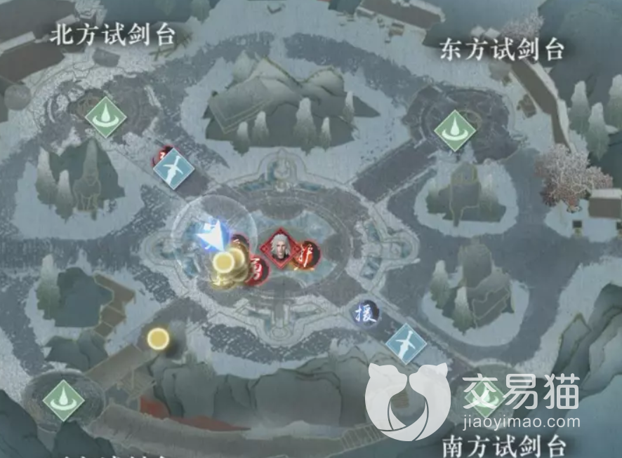 试剑天下这个竞技模式在游戏当中的机制可以概括为,当玩家进入战场之后可以发现双方阵营一共拥有24人,也就是12人对抗12人的模式。在整个战场地图上,玩家分别可以看到4个不同方位的试剑台。试剑台存在的作用就是让阵亡的玩家随机复活。不同阵营的玩家一定会在当前的战场上相遇,只要玩家能够击杀敌方,或者助攻自己的队友击杀敌方,都可以获得相应的战斗分数。