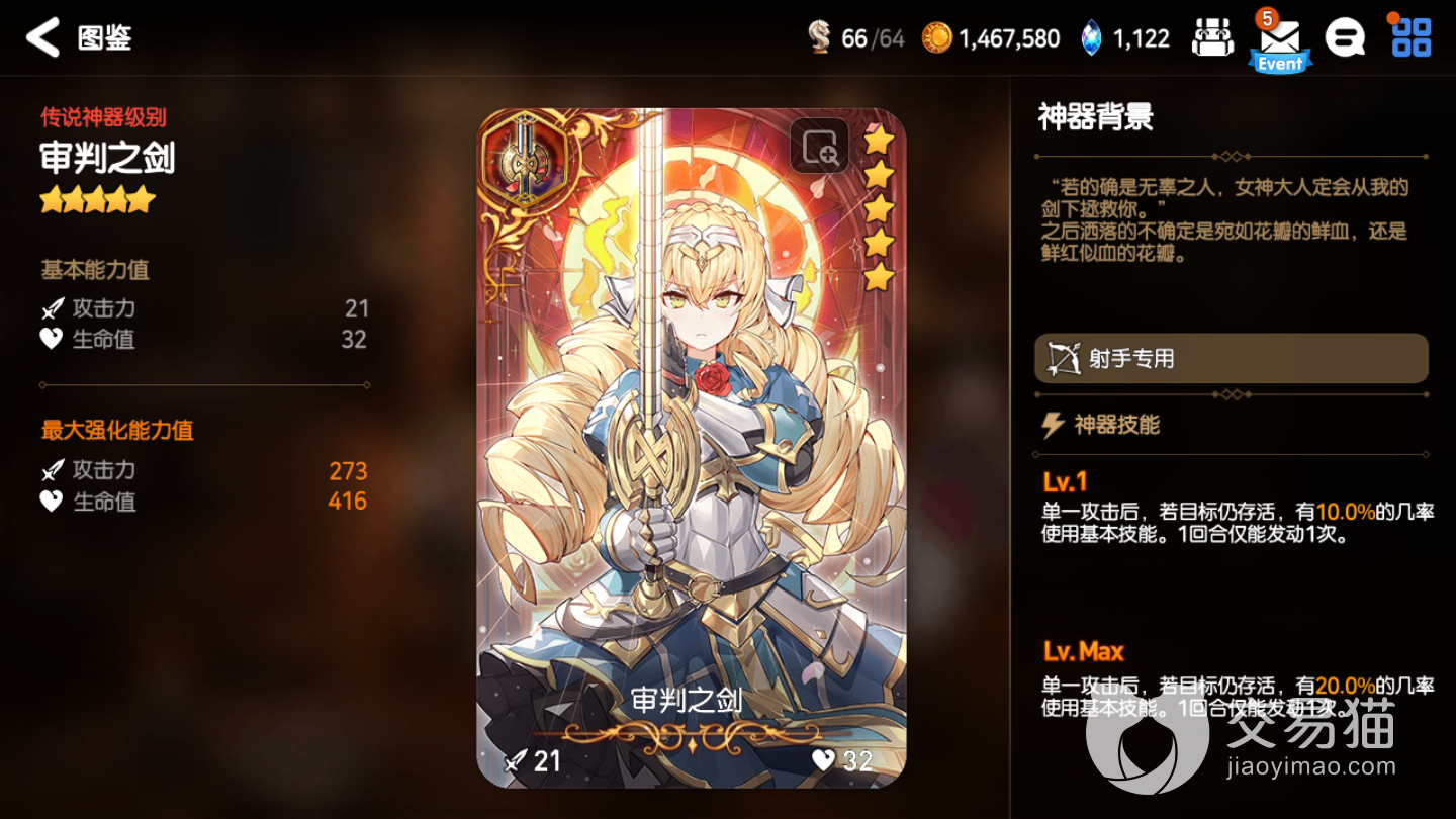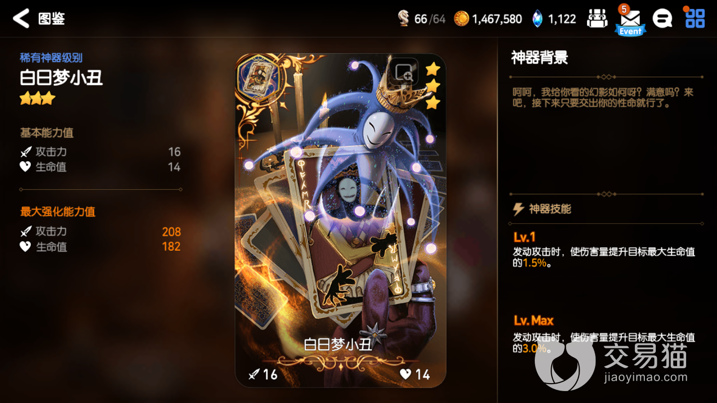 神器方面比较推荐“审判之剑”和“白日梦小丑”这两件,审判之剑是单攻之如果目标没死有最高20%概率追加基础技能,维尔萝娜的普攻是非常强的,一旦触发连击一回合可以打出超高血量的伤害。