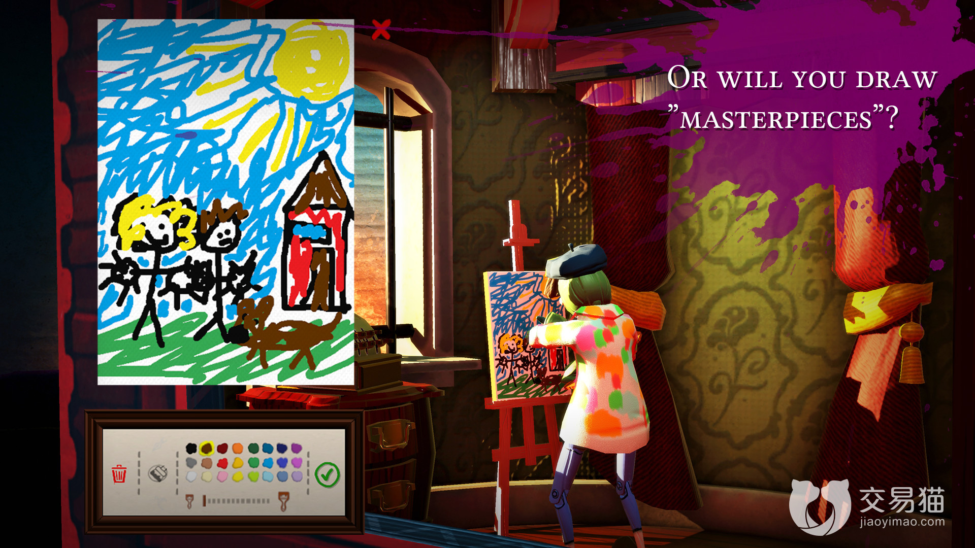 这款游戏模仿的是真实的画布上作画的一个状态,在画画过程中是没有撤回的,就跟真实的画画一样,画错了只能尽量修补。该游戏的整体风格非常的风趣真实,并且画面的内容采用的是卡通的风格,所以玩起来也非常的可爱,富有童趣。