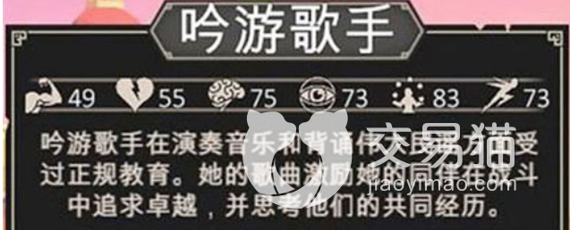第三个职业是吟游诗人,这是一个天赋优秀的角色,其实跟学者的职业有点类似,但是不一样的是,在技能方面,吟游诗人的技能,大部分都是给友方带来更多增益效果的,并且还可以为自己带来更多经验奖励,是他的天赋激励的效果,这个角色使用的时候,大家要记得点一些幸运值,这样就可以快速升级。