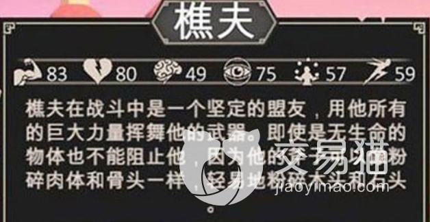 第五个就是樵夫,樵夫跟上面的铁匠差不多,但是它的属性上面其实要比铁匠多两点力量速度,所以很多新手在两者中会选择樵夫,樵夫一般使用的武器是双手斧,它带来的攻击上面是要比其他角色强一些的,但是只是在前期,后期升级的难度也是要比铁匠难一点的。