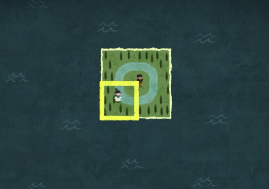 随后顺着音符的方向一直走,方向正确的话周围就会响起歌声,行走的过程中需要多次变换拼图的位置,途中会获得两块新的地图碎片,拼接后会到达一个水潭附近,捡起附近的两个碎片再次拼接,就可以顺着大树倒下的方向找到新的地图碎片了;