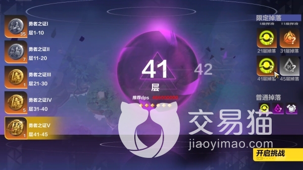 但要知道,玩家除了要完成勇者之路的前置任务外,还需要勇者之证才能真正体验到该玩法。该玩法共分为5个阶段,每10层为一个阶段,并且最后一个阶段只有5层(41到45),分别对应不同序号的勇者之证(1到5),玩家只有持有相应序号的勇者之证,才能进入对应的阶段打怪。一旦玩家通关,那么游戏将会给予玩家一个下一阶段的勇者之证(最后一个阶段除外)。反之,勇者之证将不会返还给玩家。