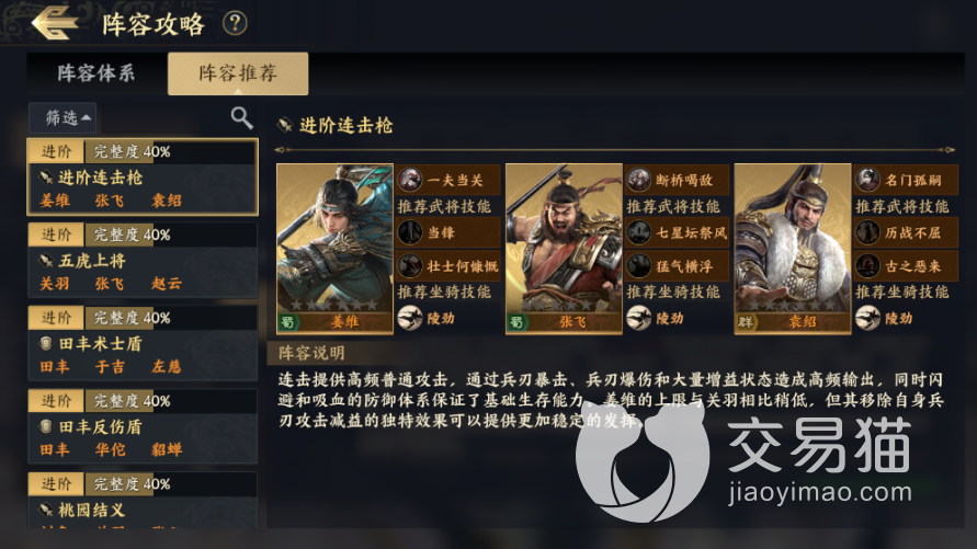 同时连击体系也可以很好地发挥一些闪避技能厉害的武将,代表的英雄就有袁绍以及赵云,这两个角色自动闪避天赋,闪避过后还可以增加伤害,跟阵容的特性十分符合。