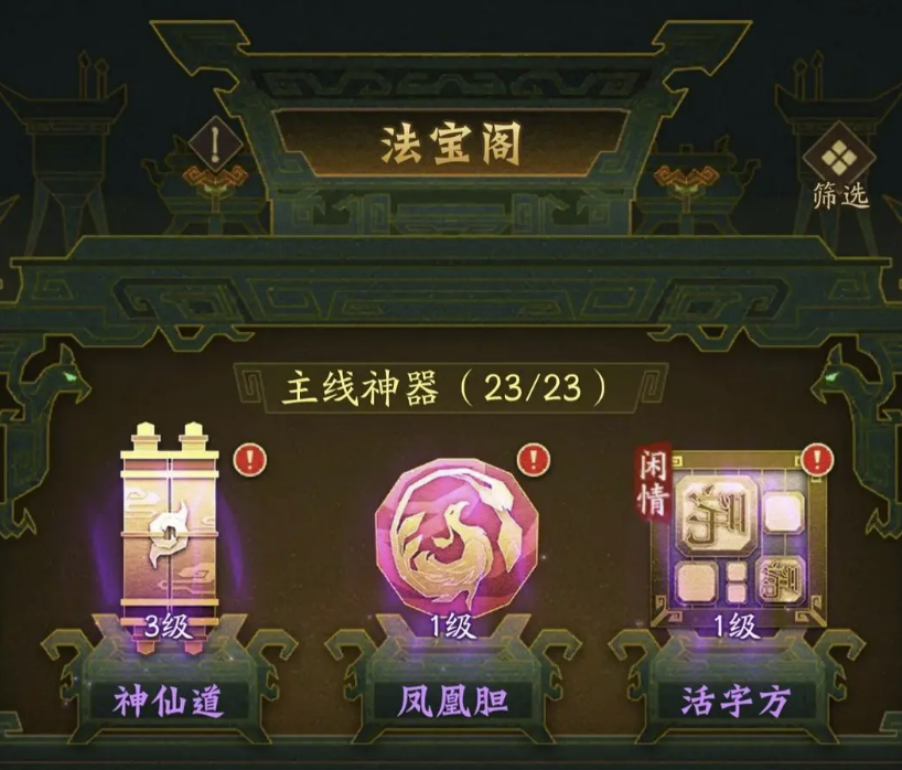 上边也提到了法宝是众多道具种最常见的也是必不可少的一项,玩家是可以通过完成主线任务的方式去进行获取,在游戏的每一个章节里边,顺利的通过关卡任务是可以拿到奖励的,而这些奖励里边会包含超多的法宝。