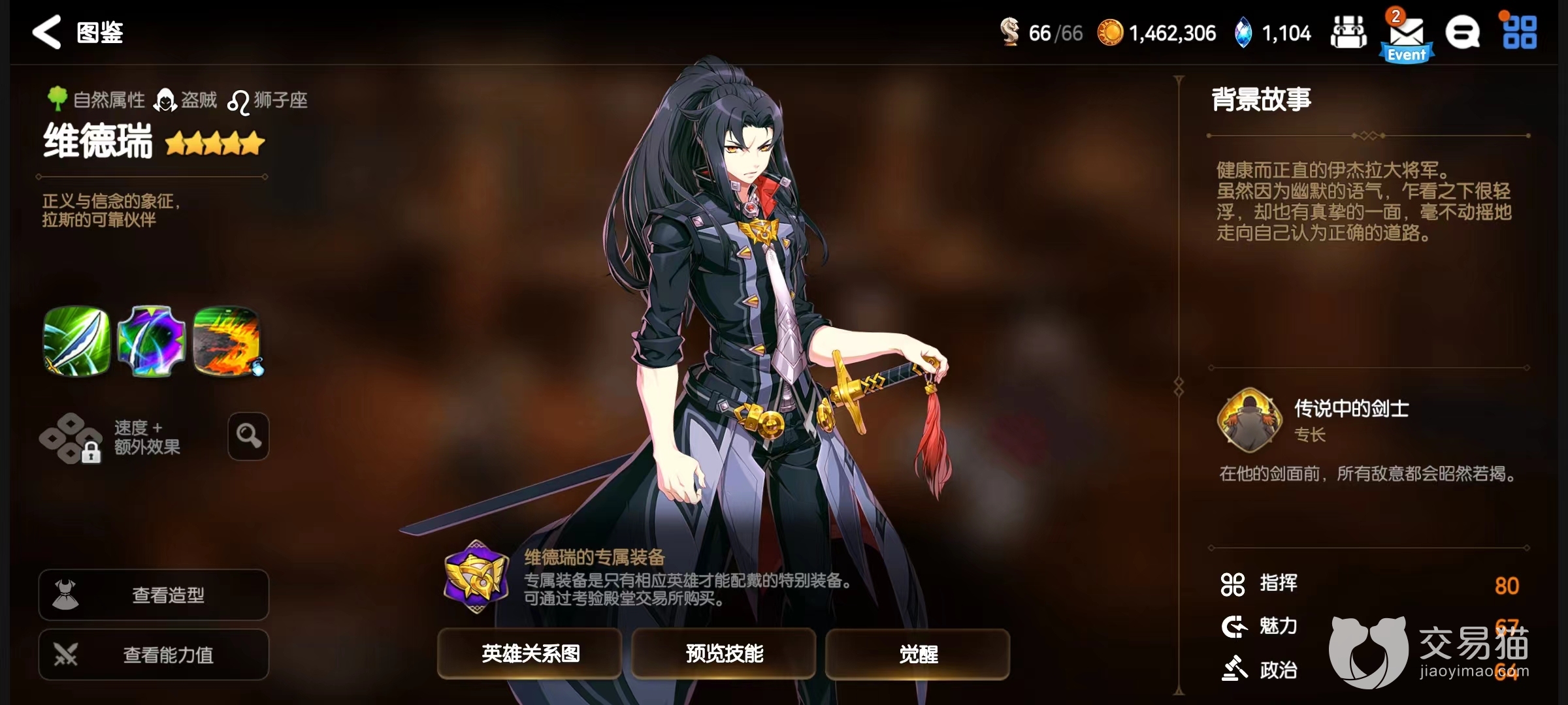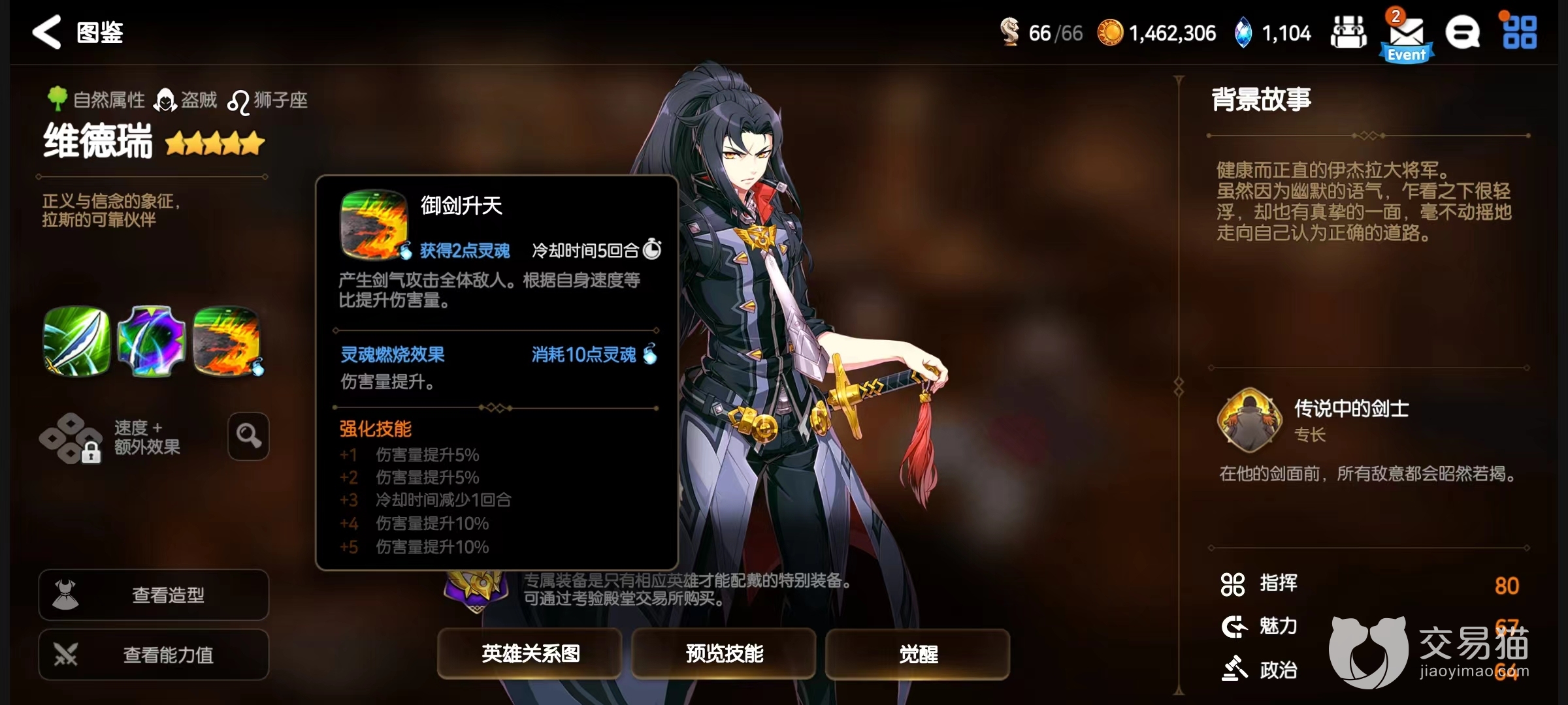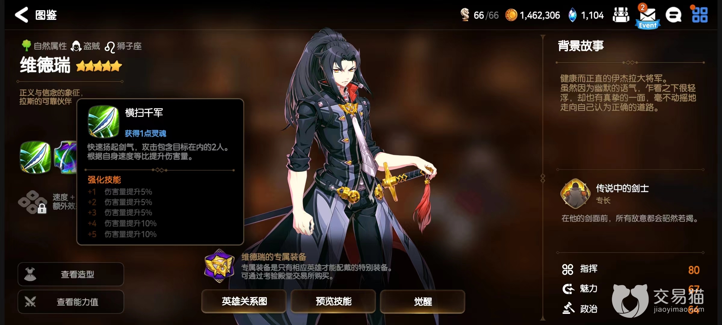 该角色是一名拥有自己专属装备的类型,这就使得部分技能能获得装备所带来的强化效果进一步提升,第1个技能横扫千军,快速释放剑气攻击对方两名目标,强化技能后伤害量大幅提升。没有其他效果,也不受到专属装备加成,属于中规中矩的普通伤害。第2个技能御剑飞燕,当使用横扫千军或是御剑升天消灭敌人时,自身将获得两个回合的攻击力提升效果,提升比例为50%。此时可以释放御剑飞燕,如果敌人中有人阵亡,自身速攻值提升20%。