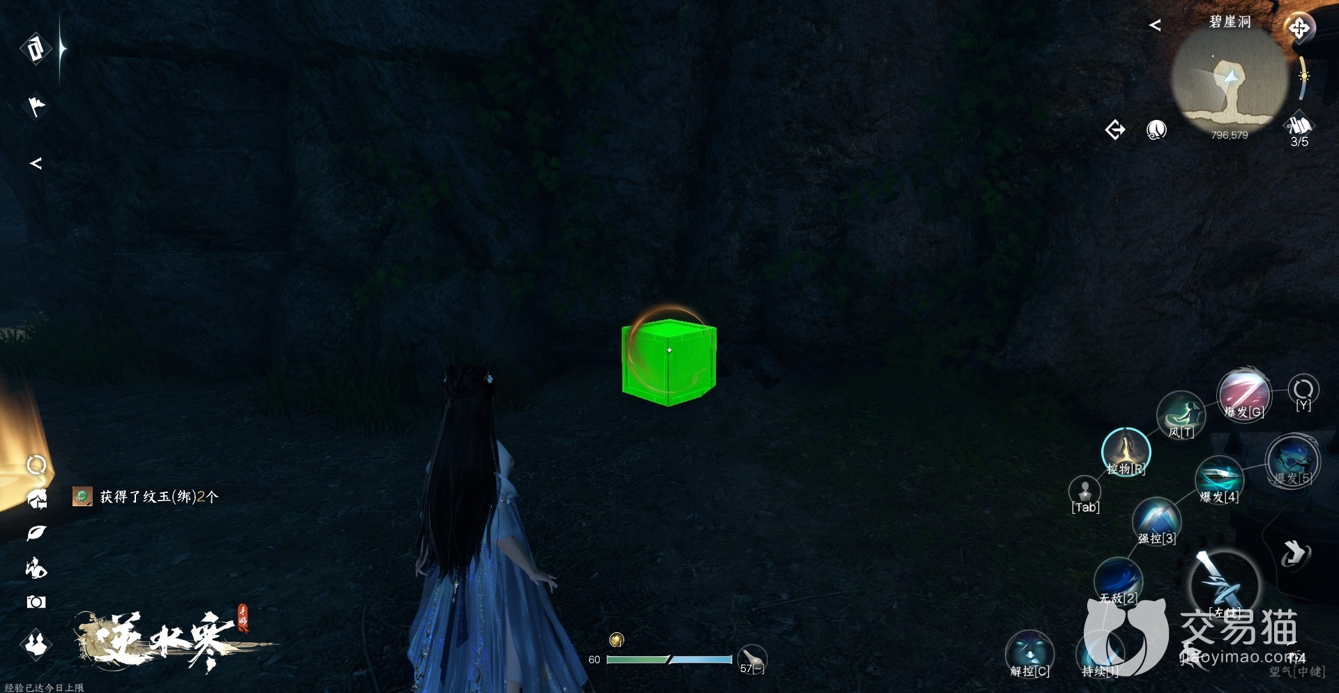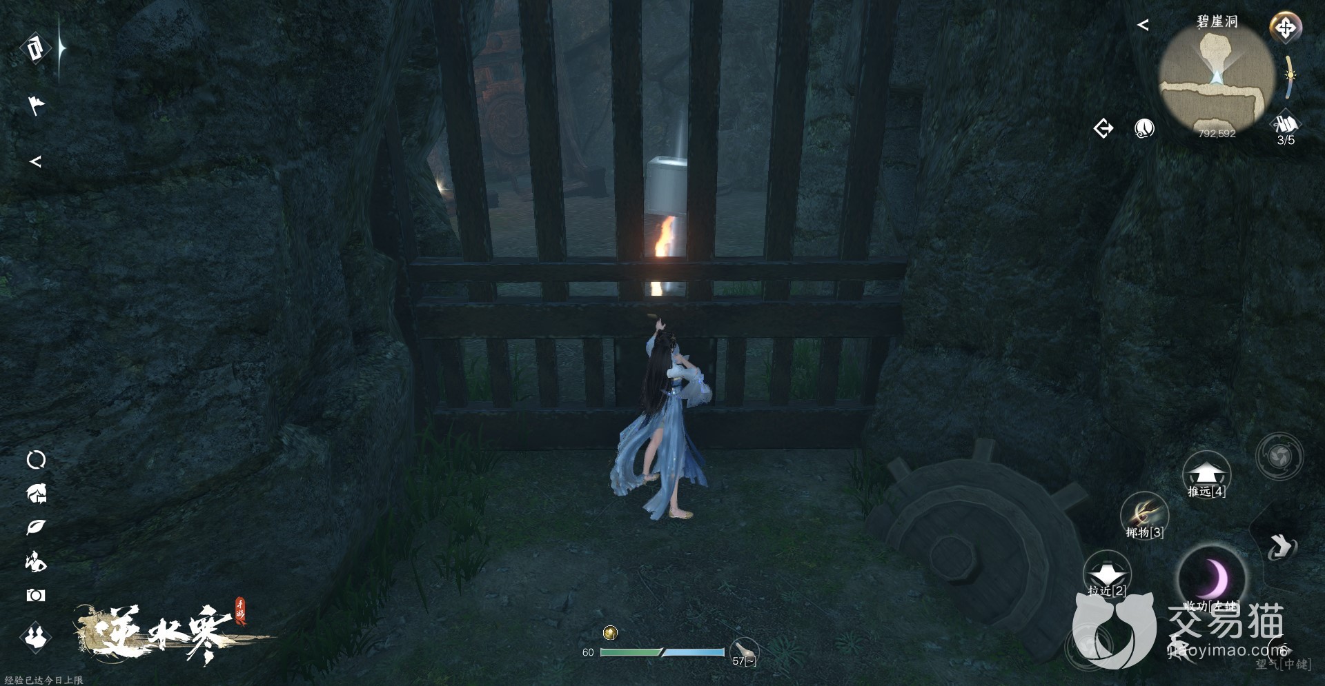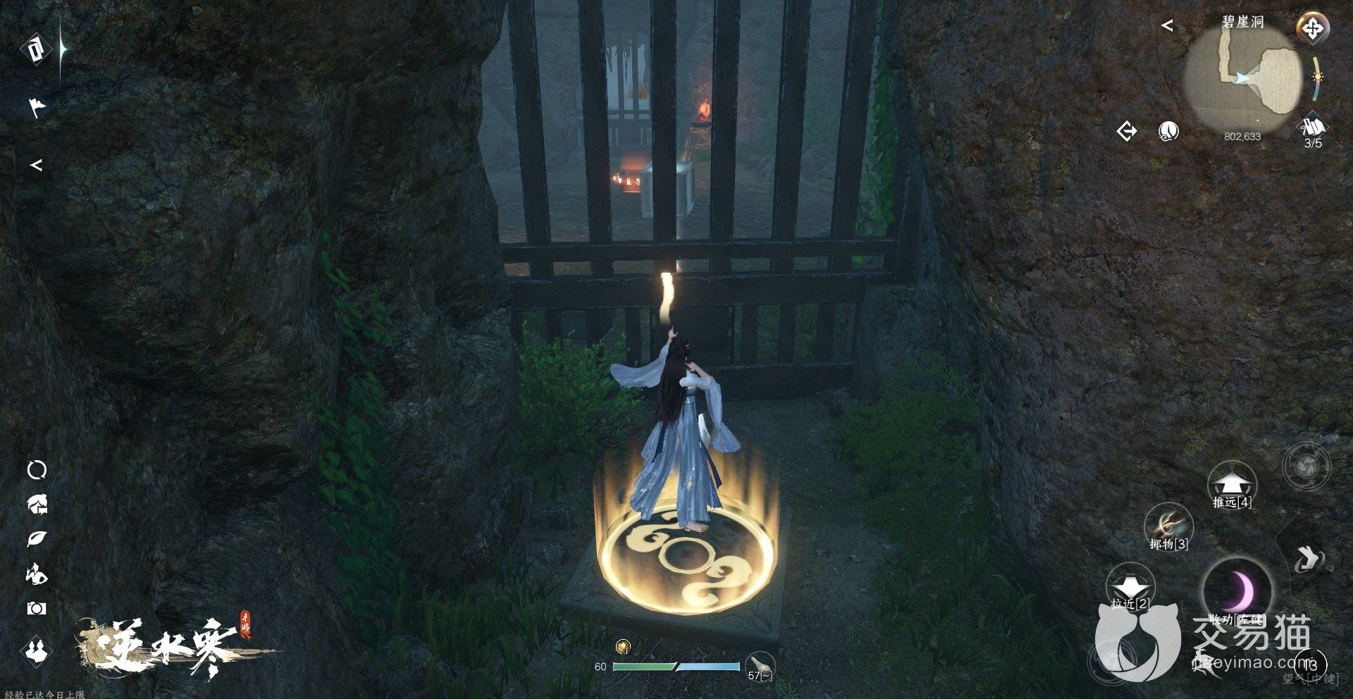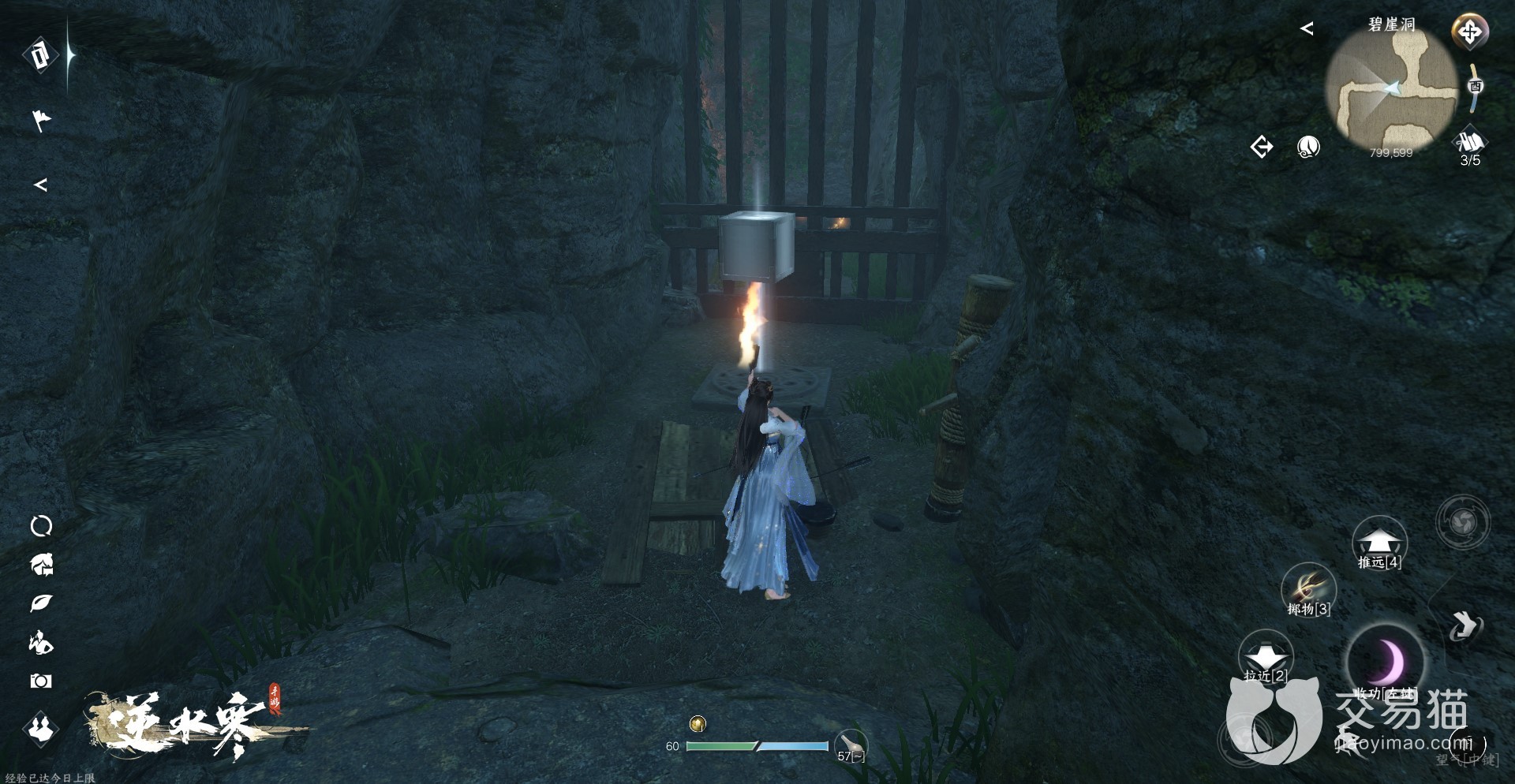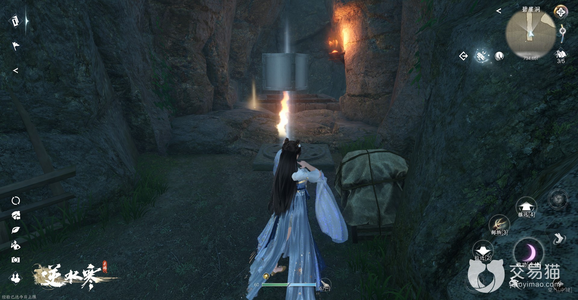 2、这个山洞的名字叫碧崖洞,进入洞内后玩家们可以看见一个石板,想要继续探索山洞的话就需要用技能吸星揽月将附近的铁块压在石板上,就会解锁接来下的洞内地图。
