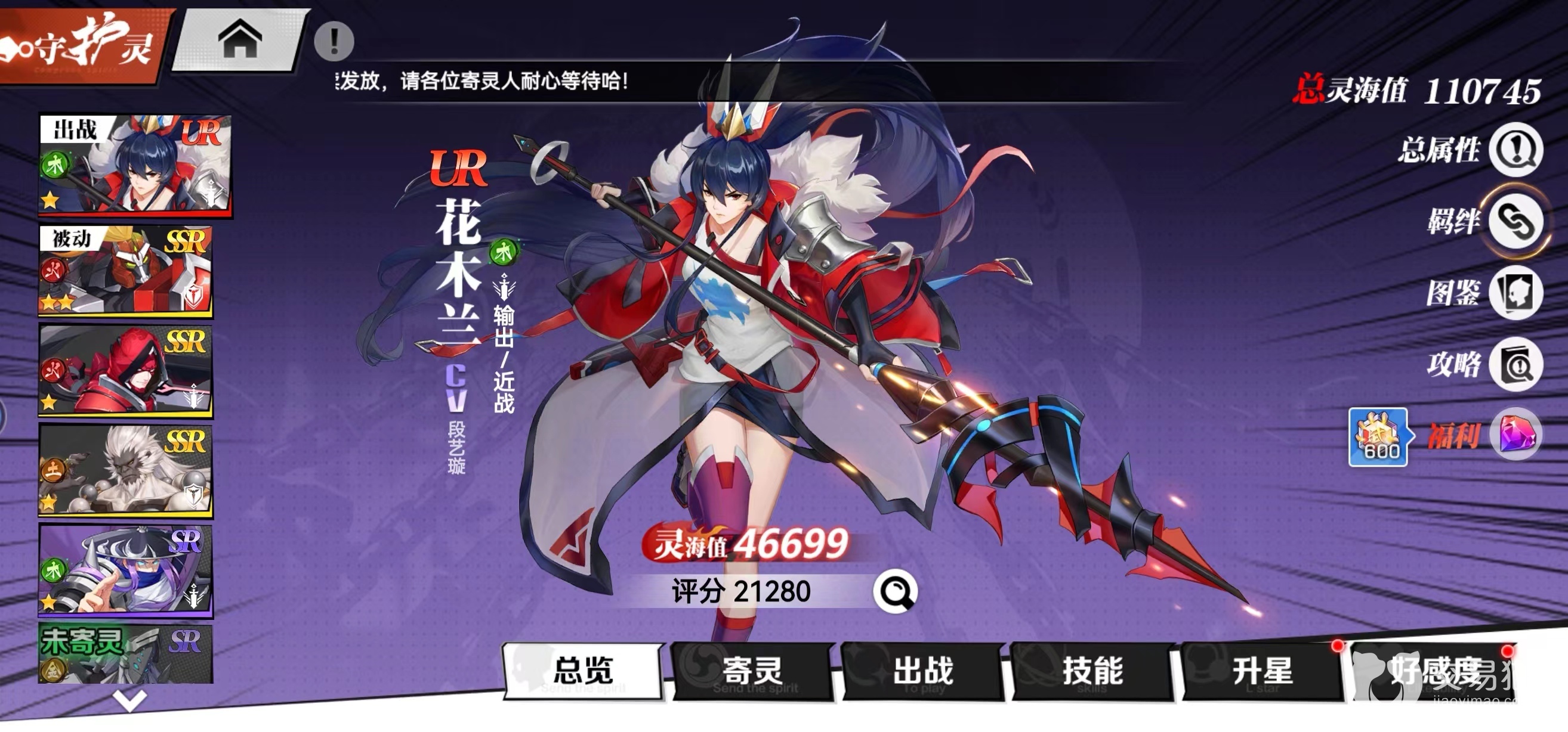 战斗模式也是根据动漫里还原的,把守护灵的几个作战方式高度复刻,玩家可以同时寄灵多个守护灵,都能为主角提升属性,但是主要强度来源于上阵的守护灵,所以通常得把练度最高的放在上阵位。
