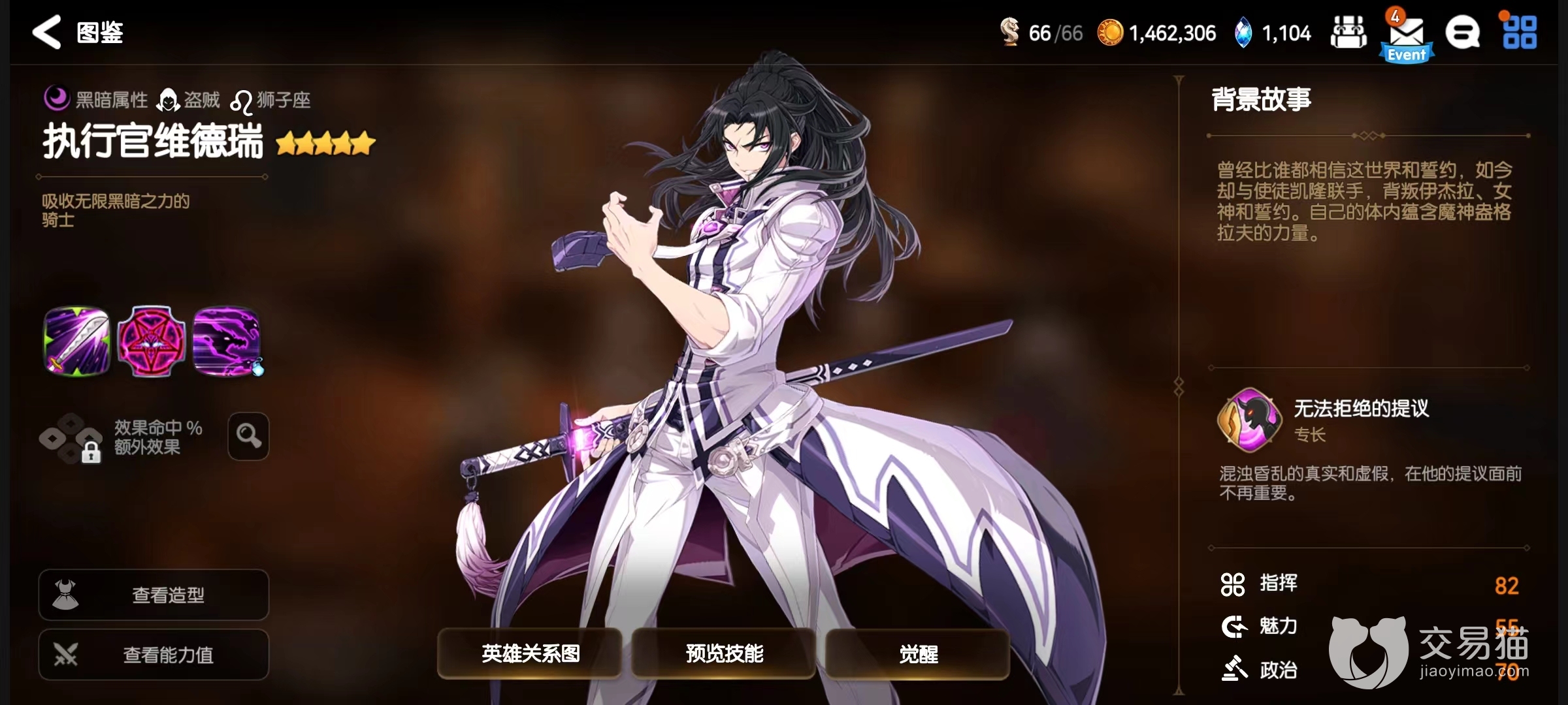 执行官维德瑞是一名吸收了黑暗之力的角色,有横扫千军、黑暗契约等技能,最关键的是霸剑漆黑。既可以利用被动来获得冷却时间重置,该技能本身也是很可观的群体输出,并且能附加命中下降影响,还能够以消耗专注力为代价大幅提高伤害。