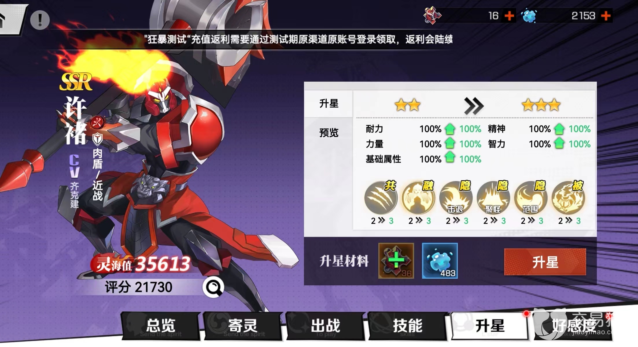 本次镇魂街武神觉醒养成攻略介绍就到这里,希望对各位小伙伴入坑时能有所帮助,大家不清楚初期培养角色,建议先升许褚,因为新手阶段会送一只,而且强度过关。