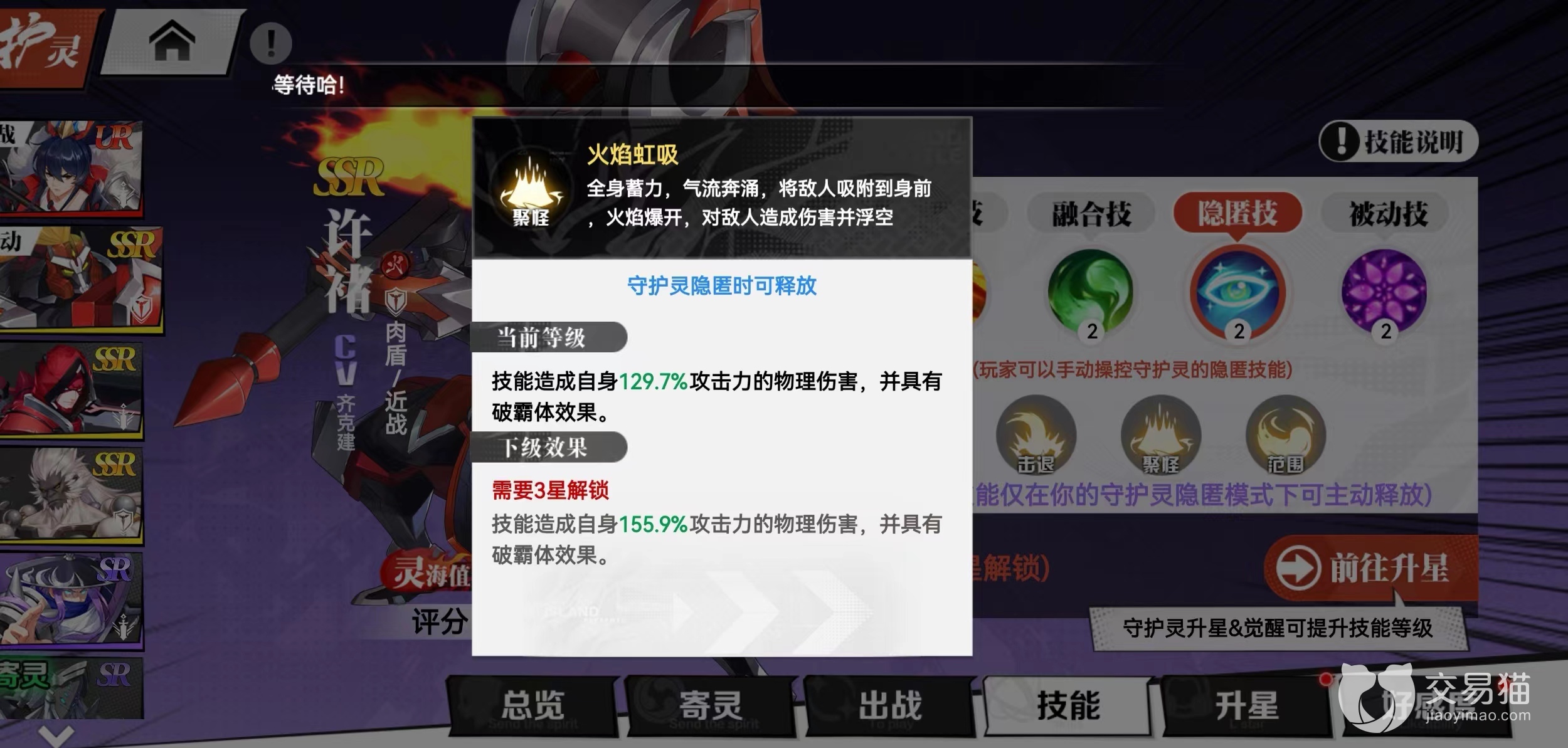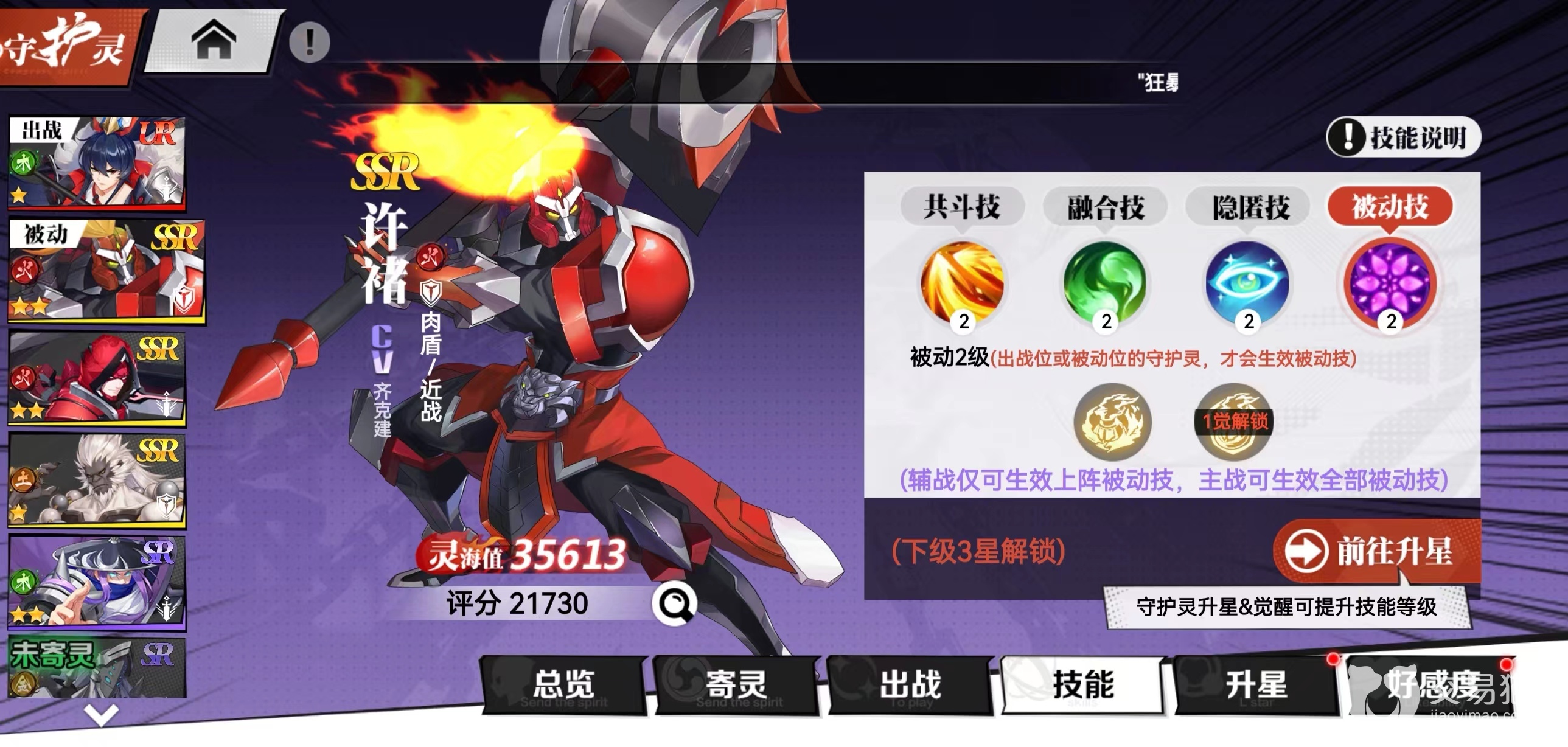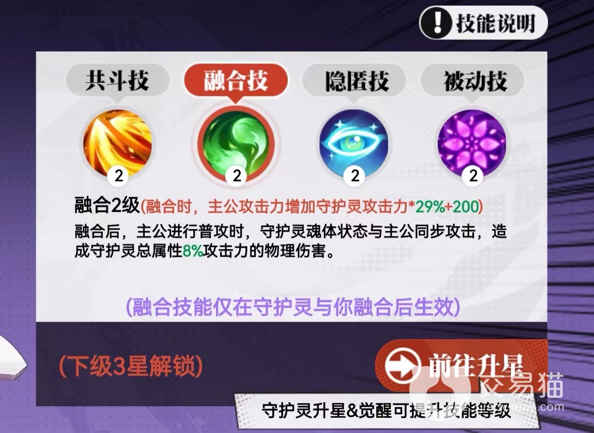 2.融合技:被动效果主公获得攻击力,攻击力提升和守护灵攻击成正比,并且主公战斗时守护灵的灵魂也会一起同步攻击。
