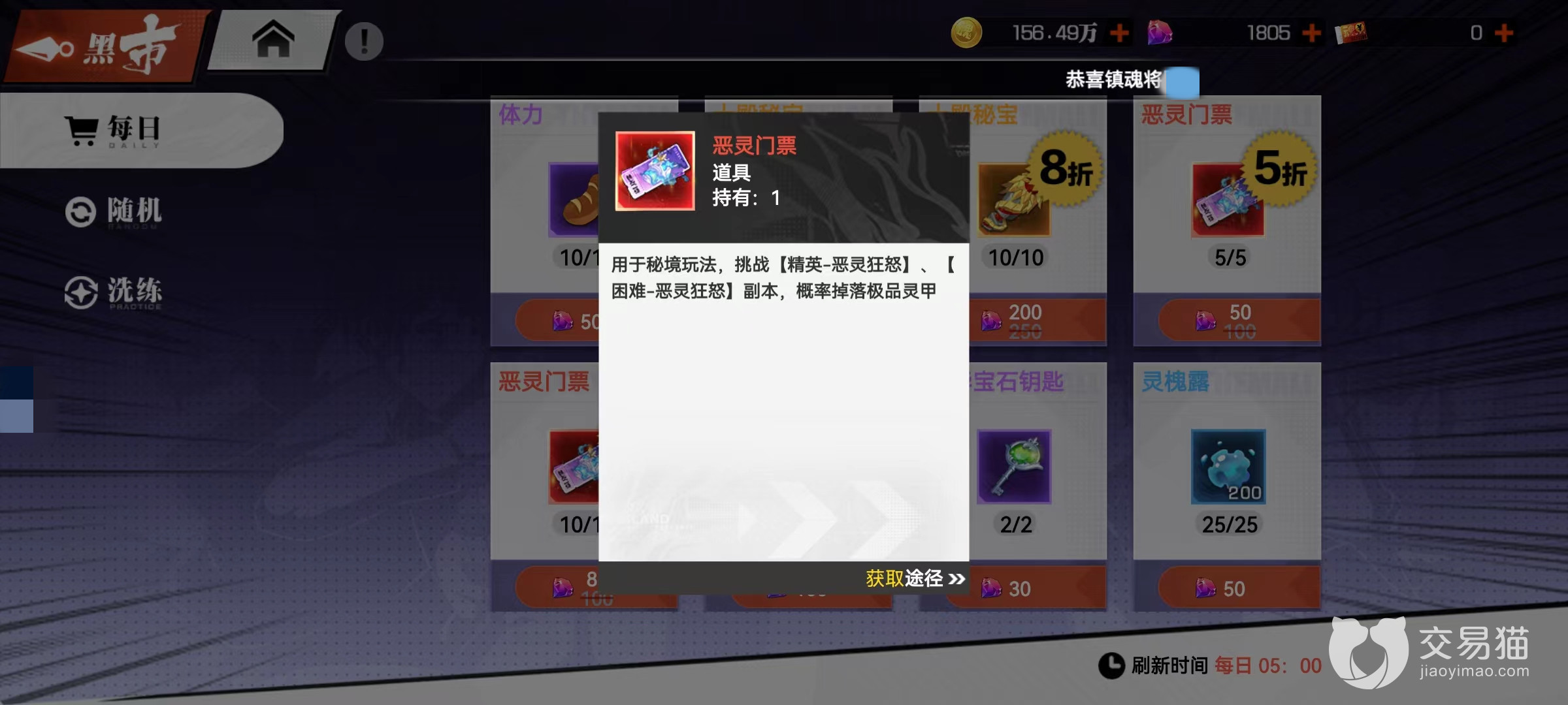 但是这只适用于前期阶段,等到后期就必须将重心转移到秘境玩法,秘境玩法中的精英恶灵狂怒和困难恶灵狂怒等副本,有几率掉落极品灵甲,这才是我们需要重点刷的内容。刷这些副本需要用到门票,恶灵门票主要在黑市以及进攻灵域等活动中获得。黑市是一个好地方,里面有些时候会出现折扣超低的恶灵门票,一定要拿下来,门票越多所能刷的次数也就越多,才会有出现好装备的可能。