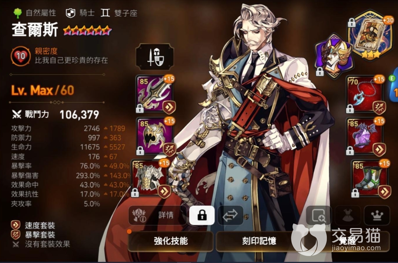 查尔斯是一个机制非常优秀,且定位十分明确的英雄。这个英雄非常完美,能抗能打,所以他对于自身的各项属性的要求都非常高,同理对于装备的要求也非常高,想要堆起来属性是非常困难的。