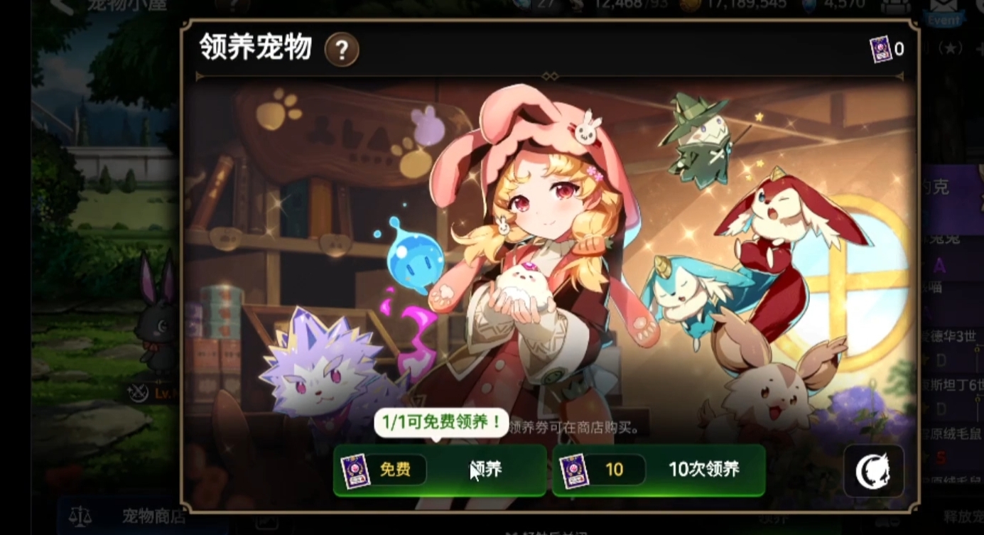 首先是获得宠物,玩家需要在游戏中做一个宠物每日一出的任务,在这里可以抽到领养券,获得领养券便可以领养宠物。领养之后玩家便可以培养宠物了,培养宠物的方式是在宠物小屋中对宠物进行强化或者合成,这样可以提升宠物的等级级别,当宠物的等级上升时,宠物会增加技能个数以及提升对玩家的好感度。