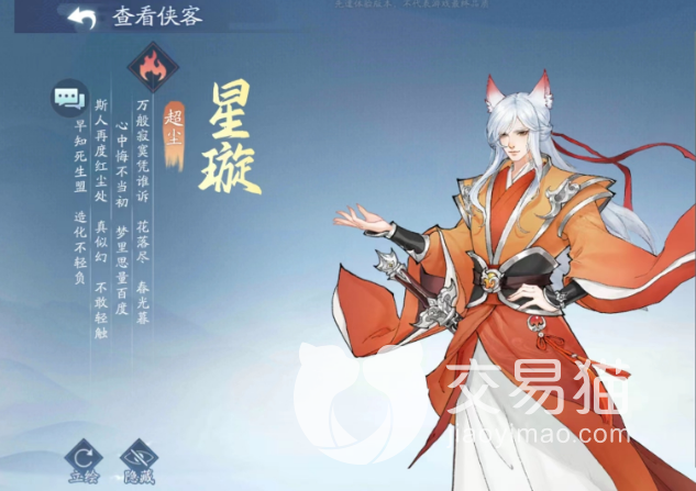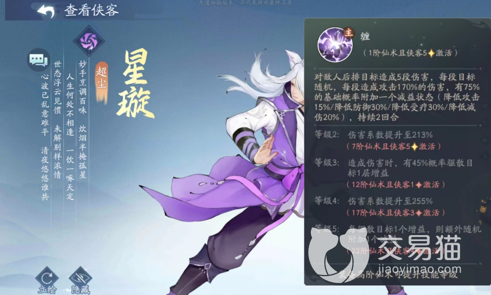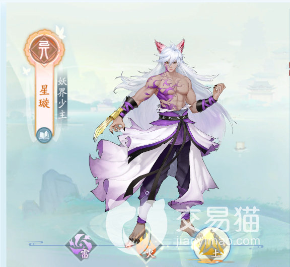 星璇是一个狼族少年,不管是外形还是背景故事,都有一种忧郁的感觉,有着非常高的人气。游戏里面他一共有两种不一样的形象,一个是人的形态,另一个是半妖形态,在属性这方面也有着很大的区别。当他处于雷属性的时候,他最擅长的就是攻击敌人的后排。所有的目标带来多段的伤害,每一个段的伤害所选择的目标都是随机的。并且攻击的同时,还会有一定的几率会附加不良状态。