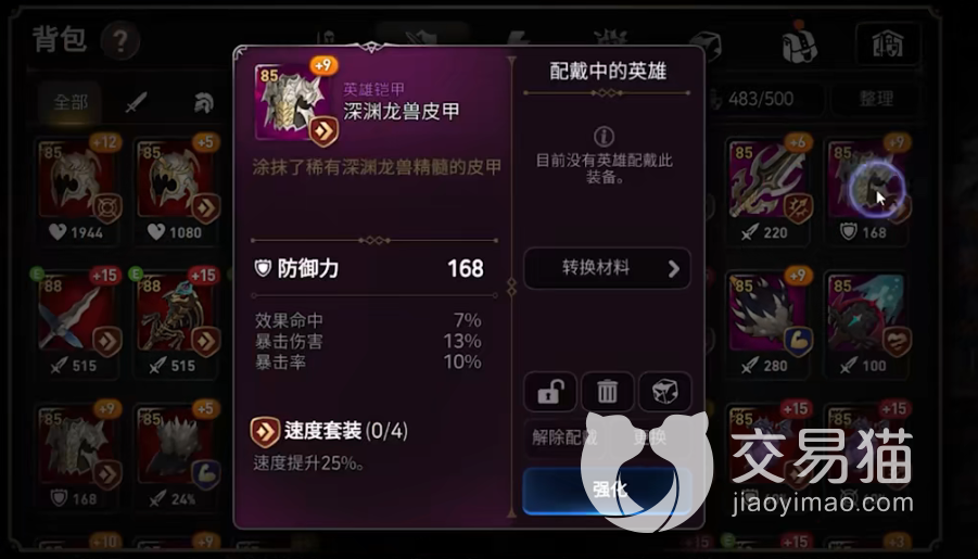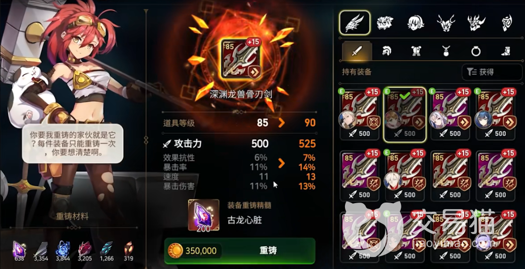 3、品质选择:到了游戏的中后期,推荐大家用紫装和红装的,其他的低品质装备基本都是当狗粮处理。