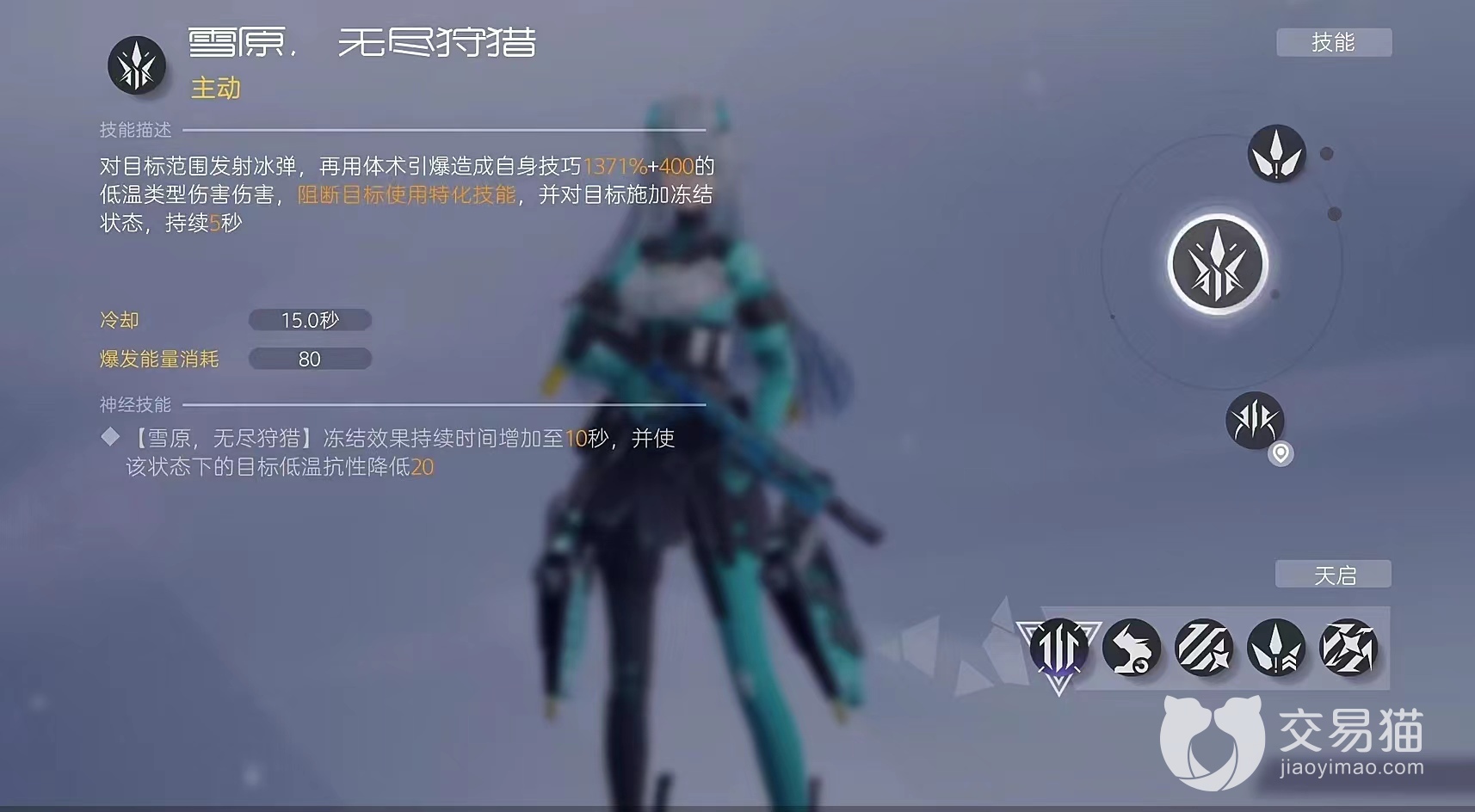 首先就是他的主动技能,当使用这个技能的时候,可以对敌人发射出冰弹,如果这个冰弹击中了敌人之后,那周围就会产生爆炸,会给周围的目标敌人造成一个伤害,并且这个伤害力达到了80%,然后还会让敌人给冰冻住,而且这个控制的时间将会持续到两秒。