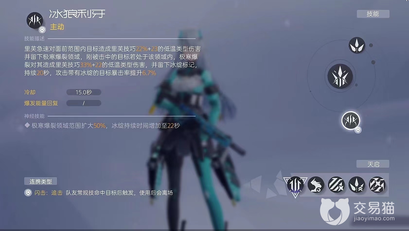 他的二技能可以说是一个偏伤害性一点的技能,当在战斗的时候,触发到这个技能的话,那将会对限定范围内的敌人造成22%的伤害,而且还会让那些受了伤的敌人所存在过的地方留下寒冰领域,之后只要敌人进入到这个领域里面,就会被寒冰给伤害到,而且这个伤害值是能达到33%的。