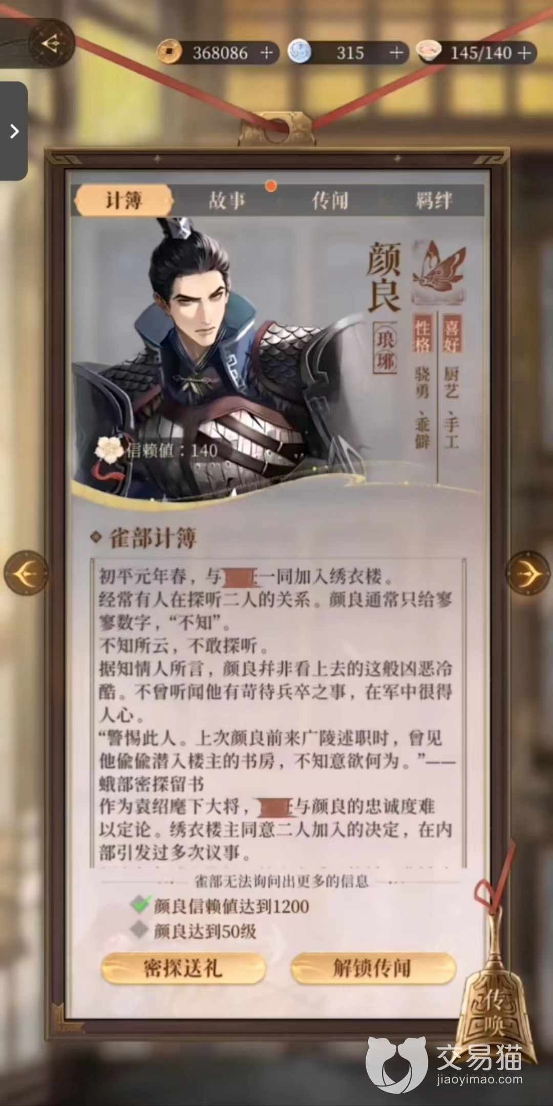 中期非常强势的书属性前排角色,可作为郭解的替身。颜良可以为己方成员提供高额的护盾,他和郭解具有同样的嘲讽技,因此有着极强的保护能力。单卡方面可以选择进入防御状态,大大提升自己的抗性,为队友承担高额的伤害。并且其护盾强度是和攻击力挂钩的,攻击力越高护盾越厚,培养攻击力可以做到两全其美,进可攻,退可守。另外颜良作为坦克,无需充当队长即可发挥自己的功能性,站位非常灵活。