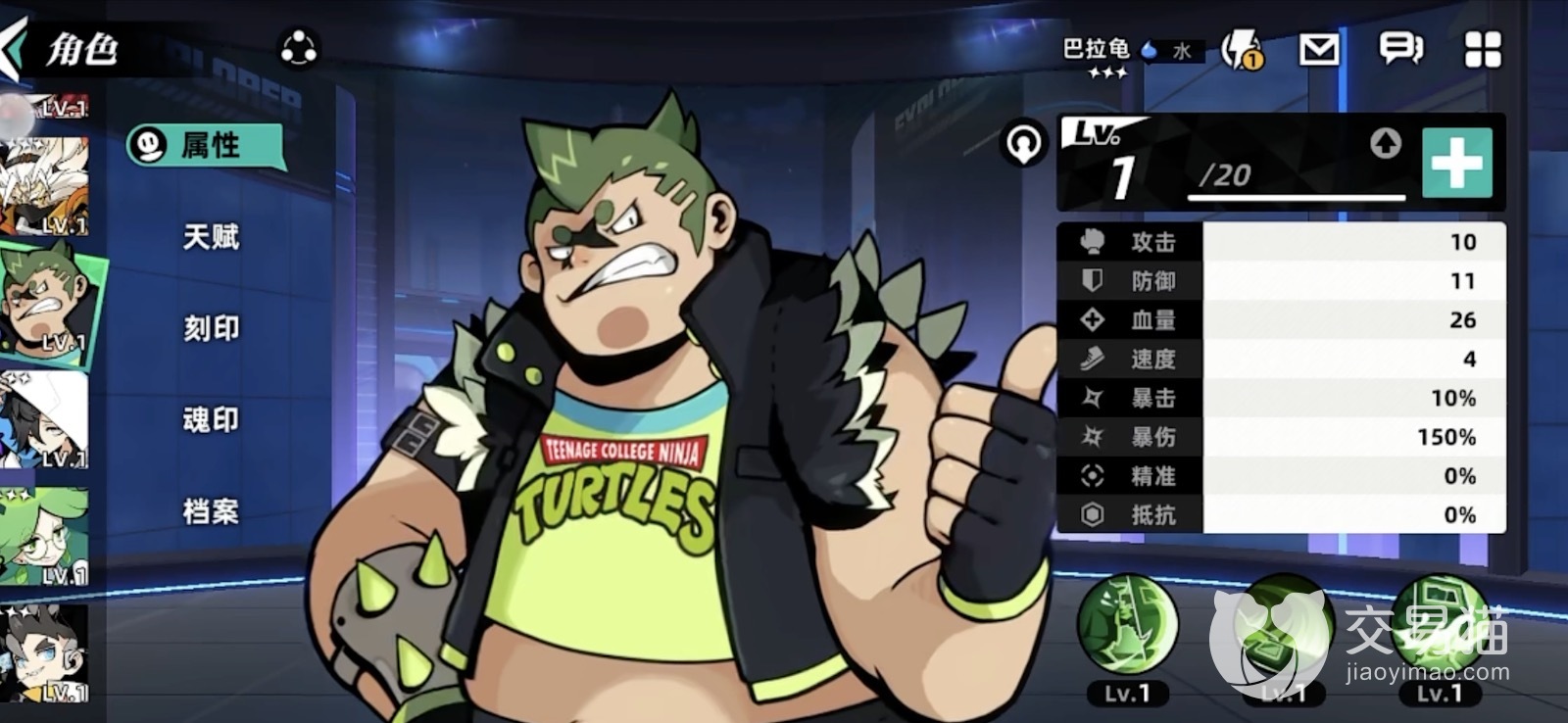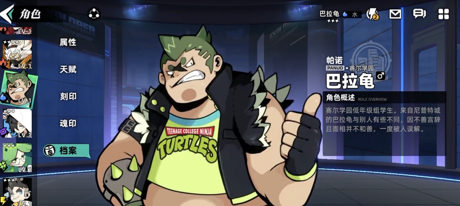 通过观察角色面板,可以得知巴拉鬼是水属性,而在游戏设定中水属性能够对火属性和地面系属性的角色造成两倍的伤害,针对草系和圣灵系则稍微弱一点,只有0.5倍。巴拉鬼拥有 719点生命值,基础的高生命值让他三星级卡牌中实力可见一斑,巴拉鬼的防御数值高达340点,并且自身还附带6%的抵抗,这让他在游戏中既可以抗住敌方的高额伤害,还能在合适的时机对敌方产生控制效果,在团队中如果有巴拉鬼的参与,绝对会让玩家们感到无比安心。
