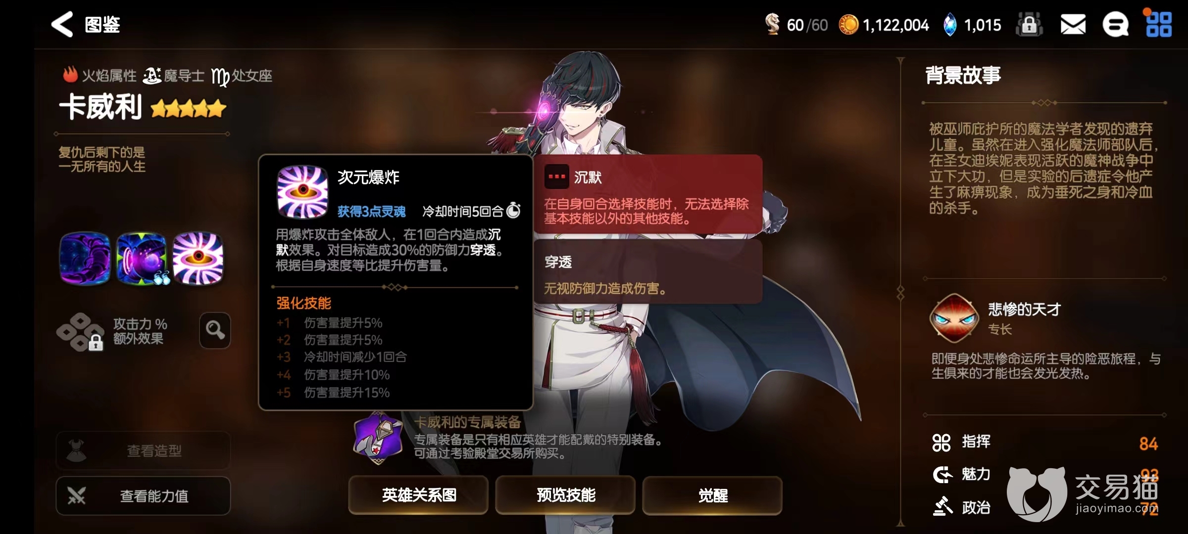 不少朋友都十分关心第七史诗卡威利怎么样,这是个火属性的魔导士,本身星座是处女座,所以在背景故事中他的性格也是十分专注的,另外其外形也非常的华丽邪魅有气质,因此想入手他的朋友相信不在少数,那么下面小编就从属性,技能和神器三个方面来分别评析下他的强度!