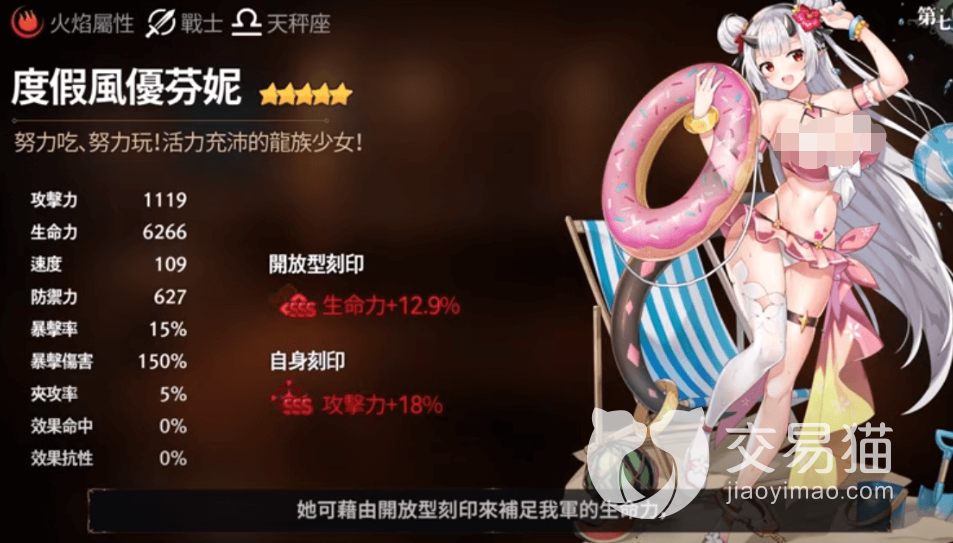 好了,以上就是有关“第七史诗度假风优芬妮强度怎么样”的全部内容,她的属性全面,技能兼具输出与功能性,而且范围也比较大,所以在实战中能够发挥重大的作用,因此有机会的话大家一定要入手培养一下!