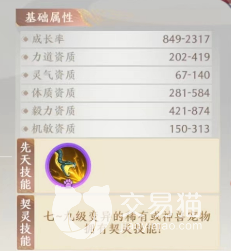 既然是根据资质来加点,那么就要先了解一下饕餮的资质。根据神兽的基础属性介绍可以看出,饕餮的毅力资质是最高的,所以我们加点的时候全部加到毅力上就可以了。