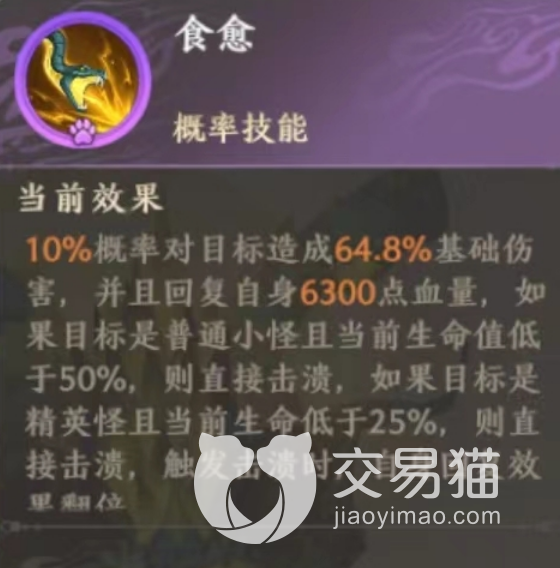 再配合饕餮的技能,血量越少的对手越容易被击败,还有几率直接将对手吞噬,不管哪一种方式饕餮本身都会持续回血,这样的话会使得饕餮的血条非常持久。