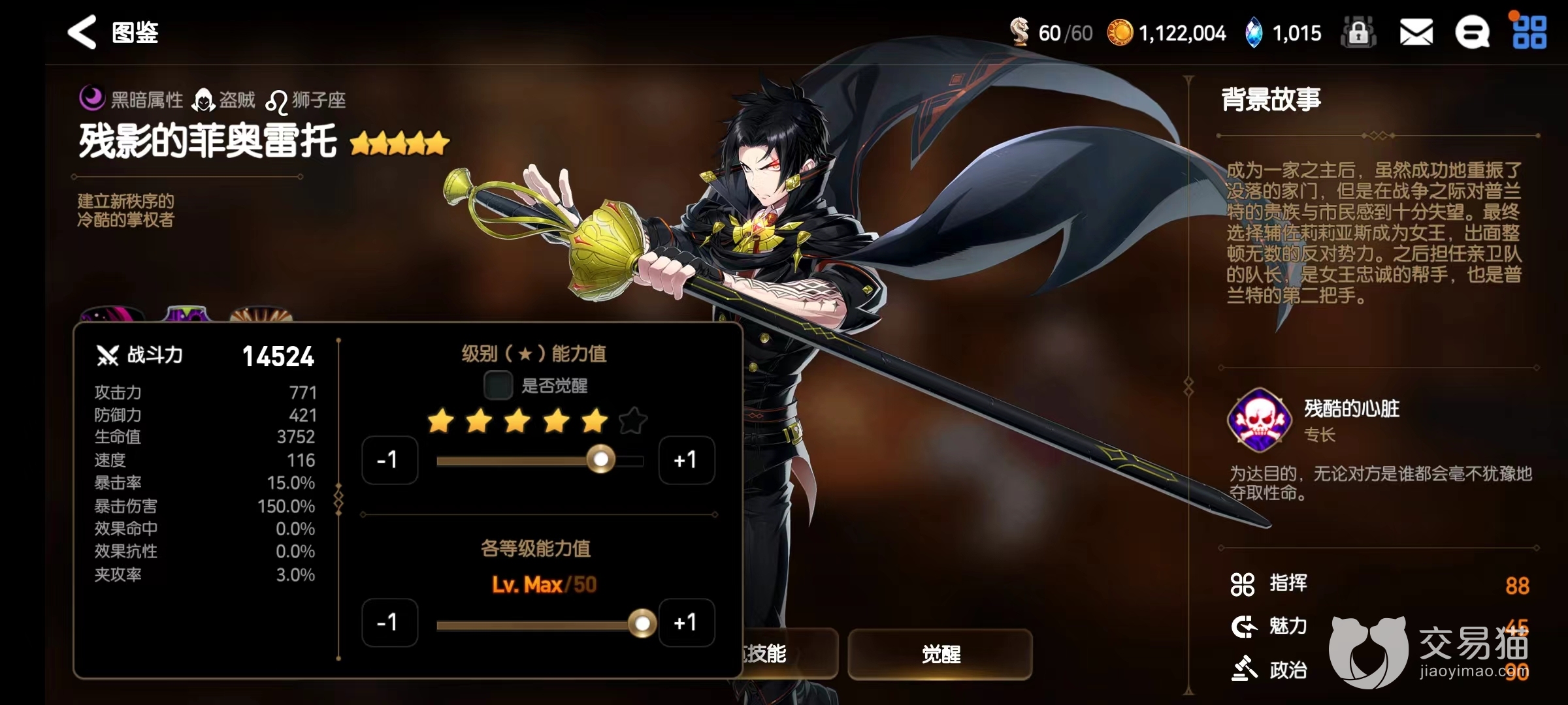 他一级的攻击力就已经达到771,所以其显而易是个高输出的角色,除了攻击以外,421的防御和3752的生命也值得关注,因为对于一个月光角色来说这个水平稍显不足,不过116的速度所带来的明显优势还是为其扳回了一城。暴击率方面,这些都没有比其他角色更高,因此光看面板的话,只能看到其攻击和速度具备些许优势。