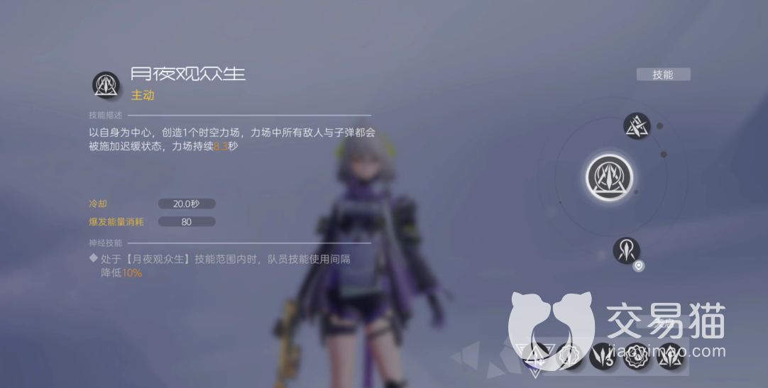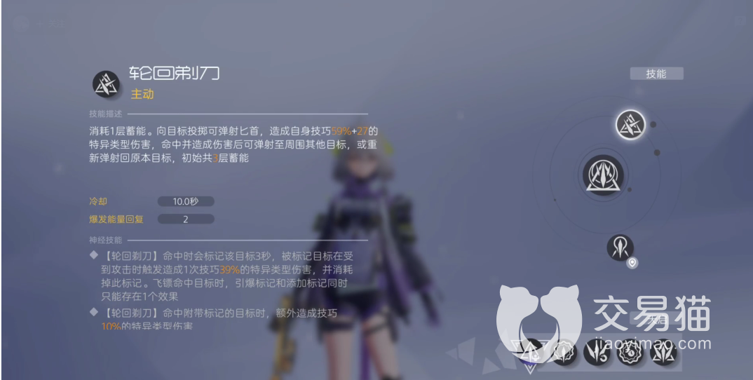 主动技能,一技能是通过投致小刀进行攻击,在攻击到敌人之后能造成50%的特异性伤害,攻击到敌人之后可以向作为敌人进行攻击,该技能需要蓄力,每一次攻击将会消耗一层蓄力,从初始阶段总共有三层蓄力攻给玩家使用。主动技能二技能是安卡最为出色的一个技能了,施展该技能时周围会呈现一个时空领域,所有的攻击以及敌人都会呈现迟缓状态,持续时间为8.2秒,能够有效的控制全场。