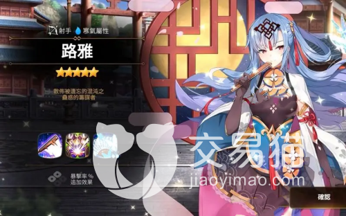 她的技能一叫做折扇:路雅用扇子攻击一个敌人,并有40%几率降低他的防御力,持续2回合。这个技能可以让敌人更容易受到伤害,也可以打断他们的一些防御技能。