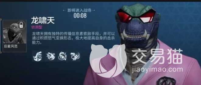 总结:该角色拥有出色的侦察能力,能够在命中敌人时马上释放蜥臀信息素,以便轻松辨别他们。积满怒气后,玩家将变身为暴龙,拥有强大的追击能力。