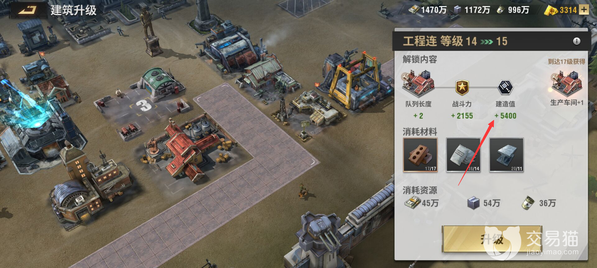 首先,小编想给大家介绍一下建造值是什么东西?建造值是自己整个营区的建造指数,它关乎总指挥部的升级,因为总指挥部想升级的话,首先必须要满足建造值的数据条件,然后才会要求像木板方砖这样的建造物资。总体建造指数等于每个建筑物具体的建造指数加起来的总和,是非常重要的数据。