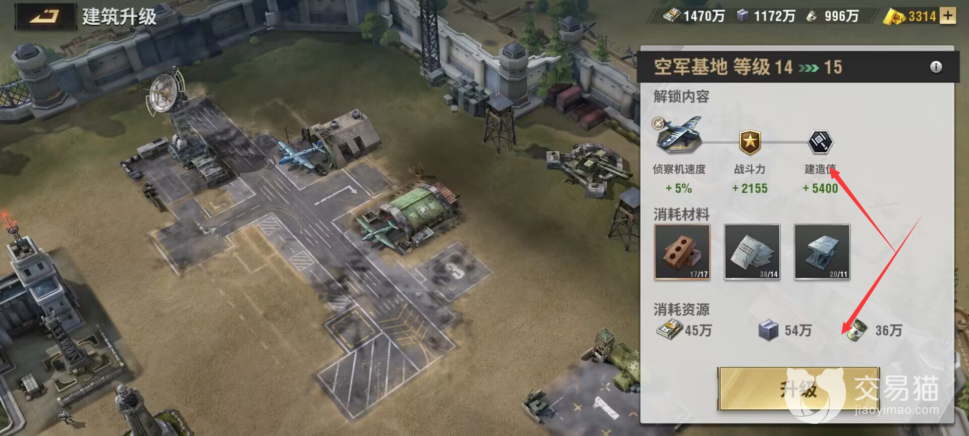 小编认为,大家在升级建筑物的时候,可以着重对某些重要的建筑物提升等级,这些建筑物可以对整体战力和整体价值提高很多。比如大家可以着重升级兵营,机场。这些可以让自己的军队实力提高很多,而且还对建造值有一定提升。当然也可以升级炼油厂和军费招募处,等级越高,带来的物资数量也越多。对其他的建筑物可以适当调整重点方向,其他的建筑物每升一级,带来的增益效果并不是很明显,大家可以先升级重要的东西。
