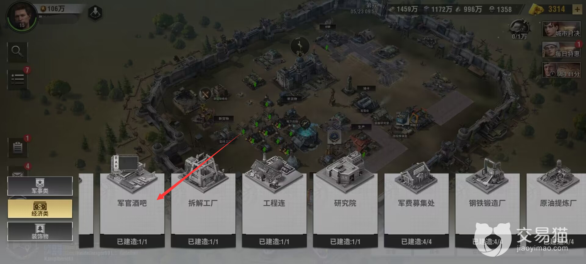首先,小编先给大家回答第一个问题就是战火勋章军官酒吧如何建造。想要建造军官酒吧是非常简单的,但是也是需要耗费一定时间的。因为这个建筑会在等级达到15级的时候开放权限,开放权限之后才可以建造。为什么说它需要耗费一定时间呢?因为想要达到15级也不是很容易的,想要快速达到该等级要求的话,小编有自己的攻略,下面给大家说一下。