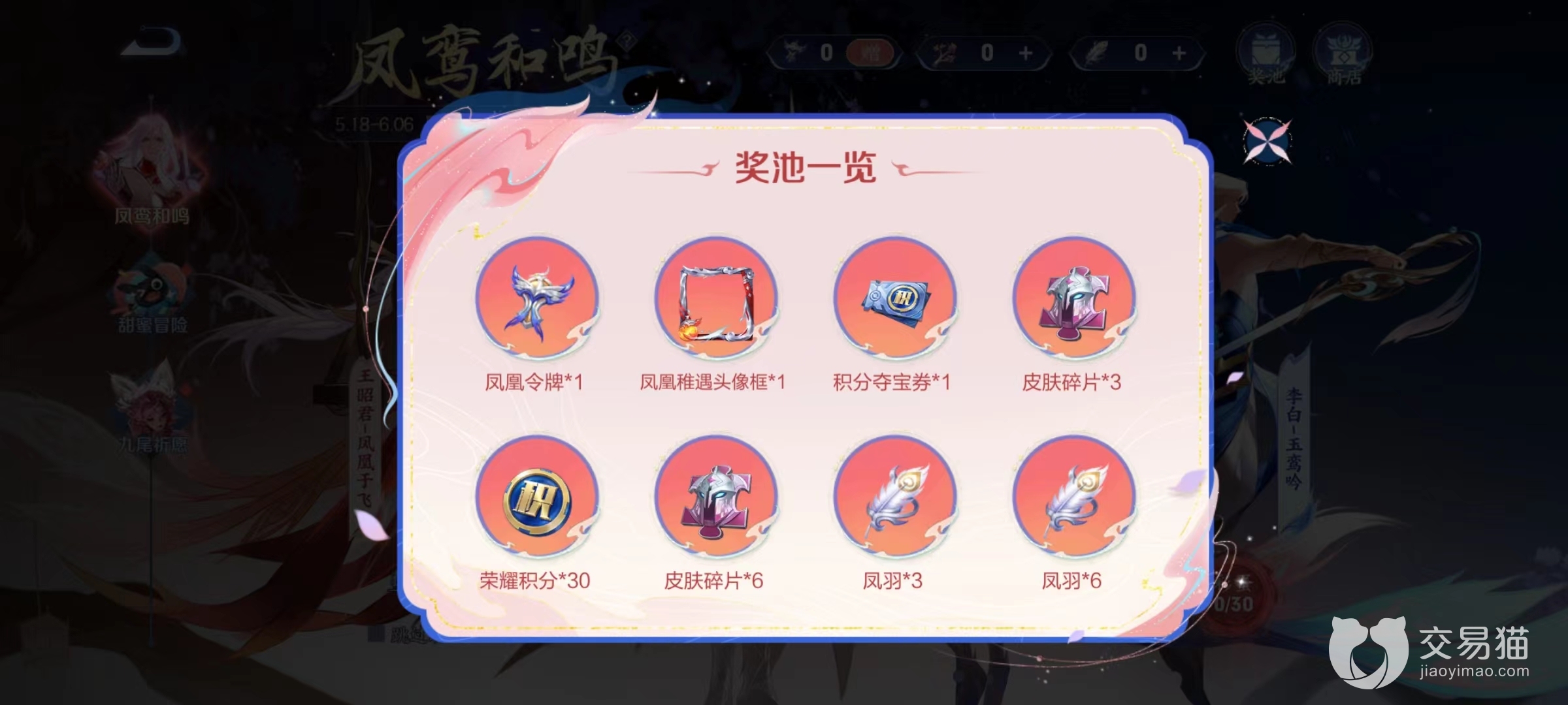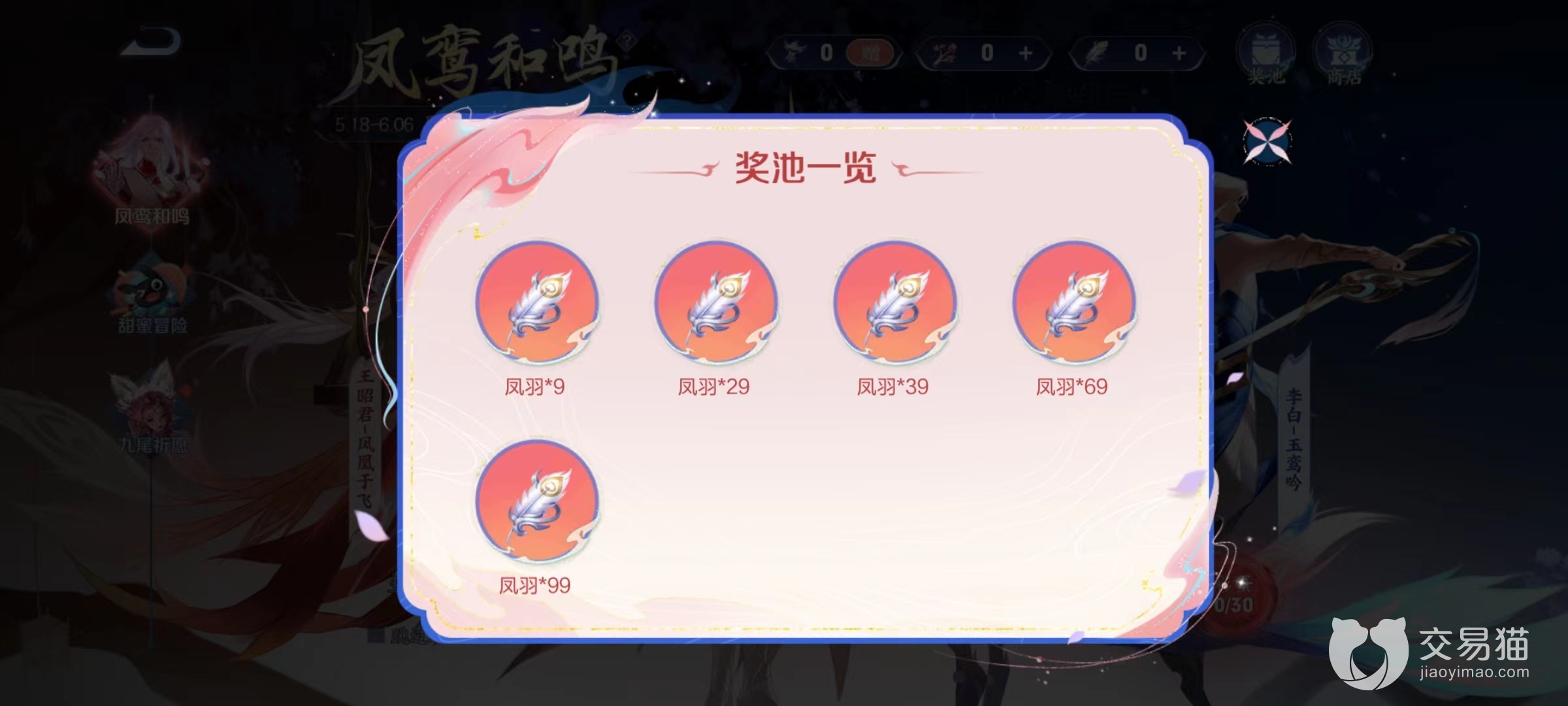 值得一提的是当你连抽三十次还会触发彩蛋,里面会含有一张五连抽的折扣券,相当于后续的抽取会更加实惠,它的奖池内主要的材料是凤羽,通过凤羽可以在商店中兑换凤凰令牌。
