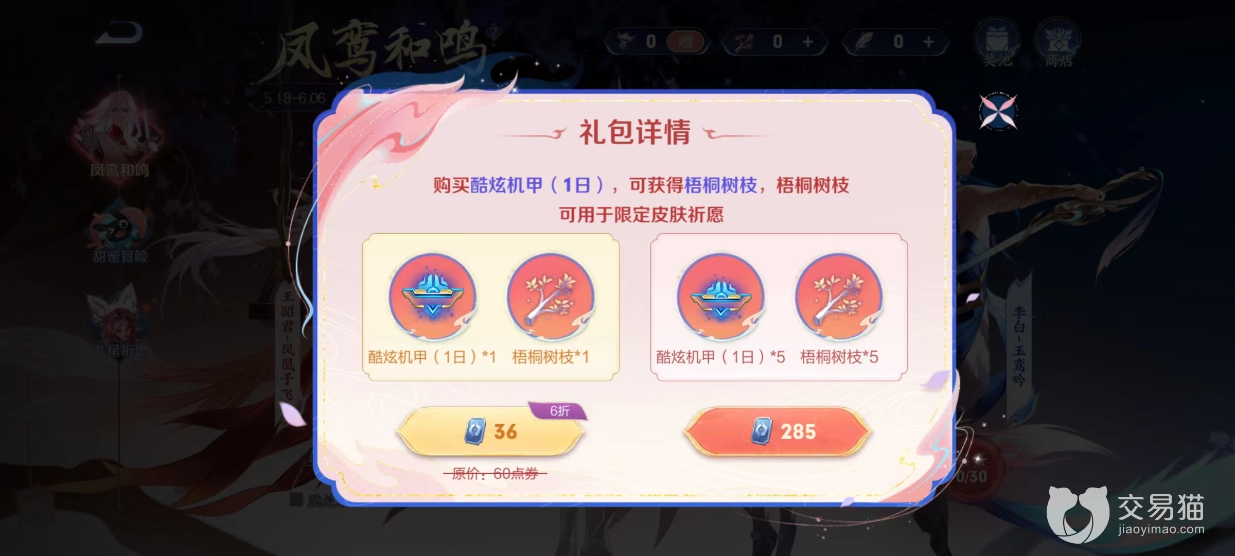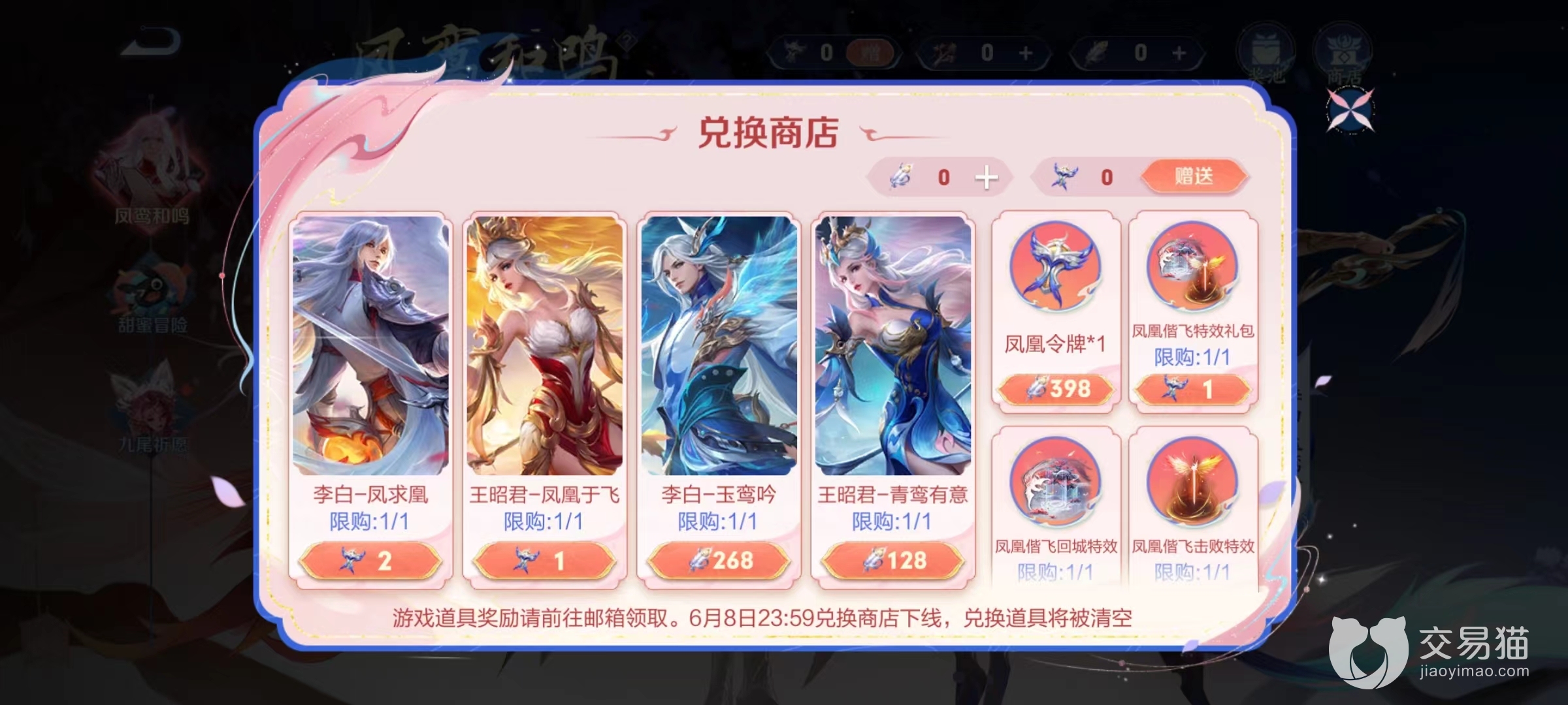 而李白的凤求凰是商店中单价最高的物品,需要足足两个凤凰令牌才能换取,而一个凤凰令牌需要用398个凤羽去换取,目前奖池中最单次可抽到的凤羽最多为99个,换言之就是人品爆发的情况下也需要最少抽九次才能得到该皮肤,换算成点券也就是465。