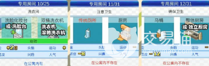 洗衣间需要玩家拥有洗脸台和双桶洗衣机,没有双桶洗衣机的话,滚筒洗衣机也可以,会增加当前的租客租金两个金币。