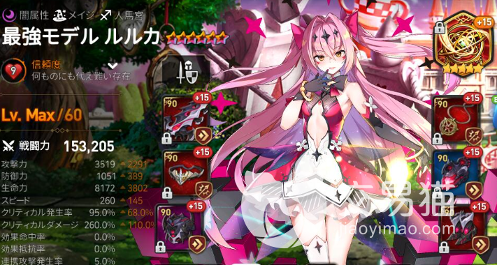 除了技能,璐璐卡的攻击力和命中都很高,可以打出稳定的伤害,并且不怕闪避。她的防御力和生命力也不低,可以承受一定的打击。她的速度虽然不算快,但也不慢,可以通过二技能提高。她的暴击率和暴击伤害都需要通过装备提高,才能发挥出更大的威力。