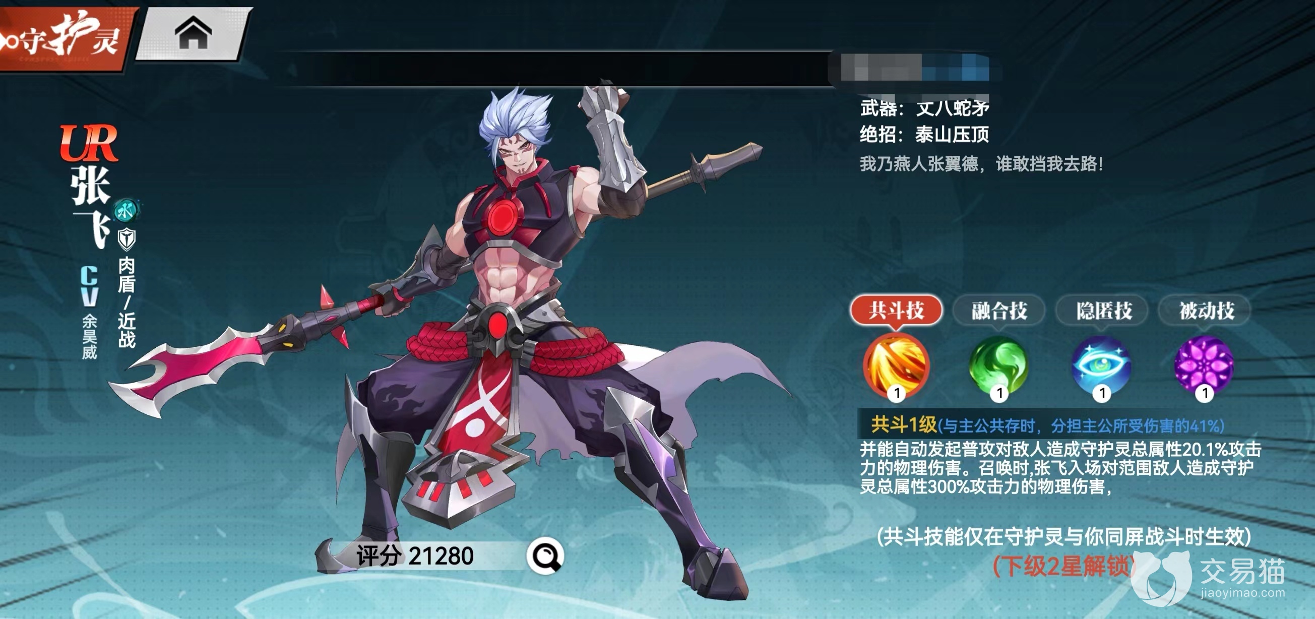 2.UR级别的张飞,新人登录7天就可领取,有着较高的输出能力,还可以帮助主公分担高额伤害,名副其实的肉盾定位。
