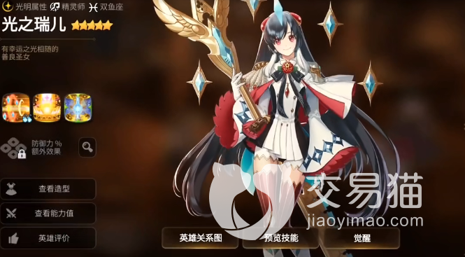 3.光之升天,可以使我方阵亡的角色复活,回复一半的生命值,并且拥有1回合无敌效果,角色觉醒后该技能可把角色回复至满血。