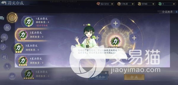 而且在这个游戏的设置中,符文也是分等级的,高星的符文提供的各项基础属性会比一般的符文效果会更好一些,使得祝神的实力也大大提升。想要给符文进行升星的话,大家可以使用稳定的五合一模式来进行提升,也可以选择2或者4个合成1个,这个合成的概率会更低一点,但也是有一定成功几率的,主要是赌狗们的玩法。