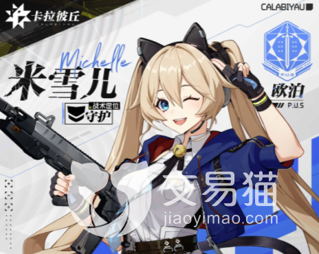 米雪儿在游戏当中作为搜查一班的新晋队员,一直以来都是非常活力四射的性格。她在游戏当中的战术定位是守护,战斗风格则是布阵型。其中技能可以分为喵喵炮台,喵踪喵迹和火力大喵。喵喵炮台是米雪儿的主动技能,使用之后米雪儿投掷一个可以吸附在建筑表面的炮台之后,炮台将会自动攻击范围内的目标角色并对其造成减速效果。