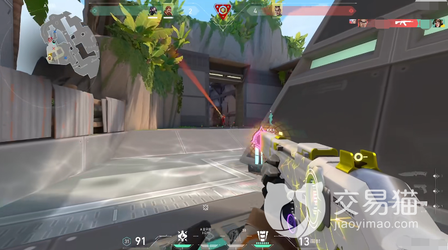 而第一人称拿在手里的话它的外观就稍微有一些变化了,枪身虽然依然是大片的白色,但泛出的光芒却变成了紫色,而且这个紫色它并不是静止的,而是在枪身上来回进行游动的,通过这种游动你能感觉到这把枪仿佛有自己的生命一般,玩起来也会更加带感。