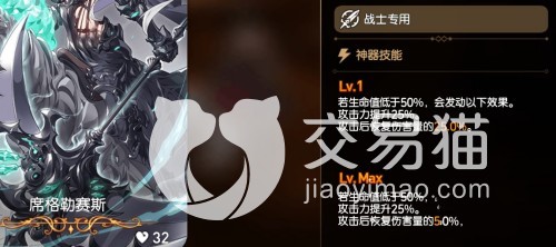 席格勒赛斯:这是露娜专属的神器,也是最契合她的神器。在露娜半血以下时提升攻击力和吸血能力,补足了露娜半血之后失去2技能加成的缺陷,也增强了她的生存能力。这个神器适合泛用型的露娜,在PVE和PVP中都可以发挥作用。