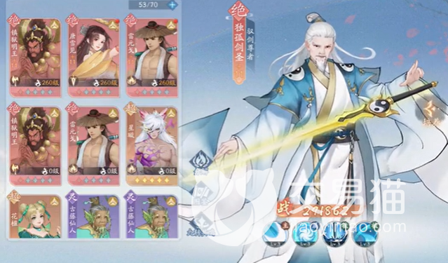 虽然这个角色比不上一些较强的仙系人物,但是在人间世界那是无敌的存在哦,只是游戏中独孤剑圣的属性不少强阴阳属性,对此小编觉得是比较遗憾的哦,我们从角色外观上来观察,虽然是人,但是给人一种仙气飘飘的感觉,而且这个角色还有一把伤害超高的仙剑,其中主要技能就是对敌方单位进行全体伤害,如果敌方血量低于一半的话,还能对其造成更多的伤害加成。