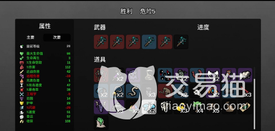 以上就是土豆兄弟狂人攻略介绍了,狂人可以选择小青蛙作为道具,可以增加攻击的范围,另外就是选择具有吸血效果的道具了。狂人这个角色难度不大,就算是很多新手玩家也能很好的操作,只要注意道具和武器的搭配就可以很好的运用这个角色了。