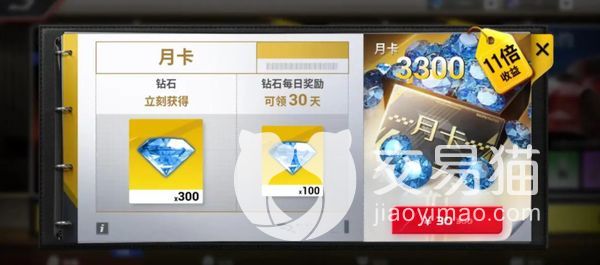 在这个游戏中,需要使用到钻石的地方有很多,大家要是花费30元来购买一个钻石月卡的话,可以立刻获得300钻石,并且只要每天登录在本月,每天都可以领取100个钻石,可以领取30天,也就是3000多个钻石。
