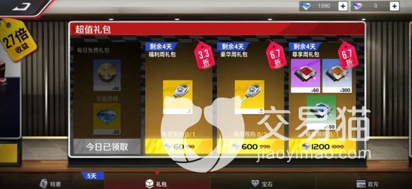 大家还可以点开超值礼包,它里面会周期性给大家刷新一些低价好物,其中每天都会有一次免费礼包可以领取,这个建议大家去领取一下。还有一些低价礼包,对于小氪玩家来说也是非常适用的,大家可以看一下里面有哪些东西,找到自己需要的那个,然后再进行购买一下就可以了,没必要全部买一遍,在这里购买的价格会比其他地方更低哦,这样也能减少大家的支出,提升自己收益。