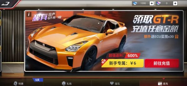 新手玩家进入游戏之后,最推荐大家购买的是新人专属首充,这个项目只需大家花费六元就可以获得一个稀有车辆,它是游戏中所有氪金项目中最划算的一个了,所需金额不多,而且得到的东西质量都非常好。